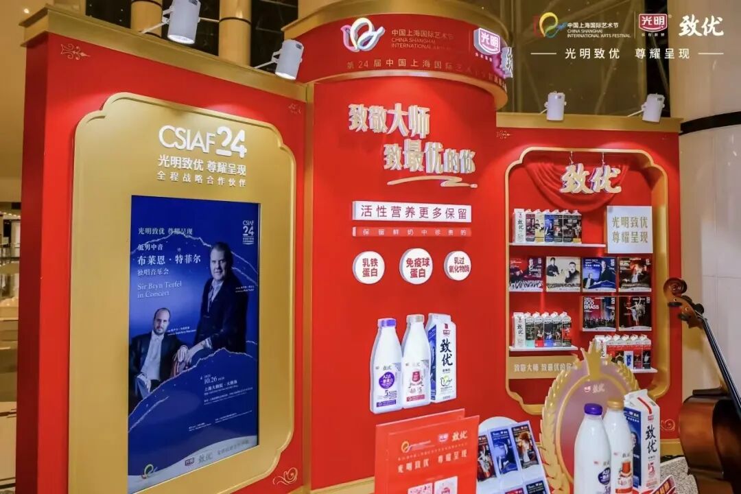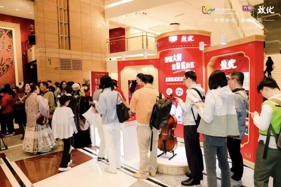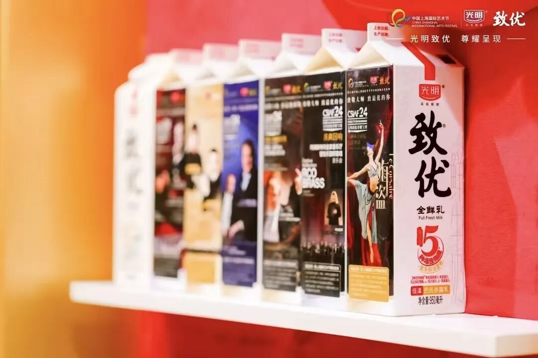 中国上海国际艺术节多场演出的候场区里,光明乳业精心准备了互动环节,观众凭票根就能赢取演出文创产品、鲜奶等各种奖品。同时,光明乳业为本届艺术节推出光明致优全鲜乳限定版包装,使高雅艺术以更亲切的方式融入生活日常。包装上印有艺术节元素与冠名剧目演出海报,让消费者在品味鲜活美味的同时,也能触摸到艺术节的独特魅力。