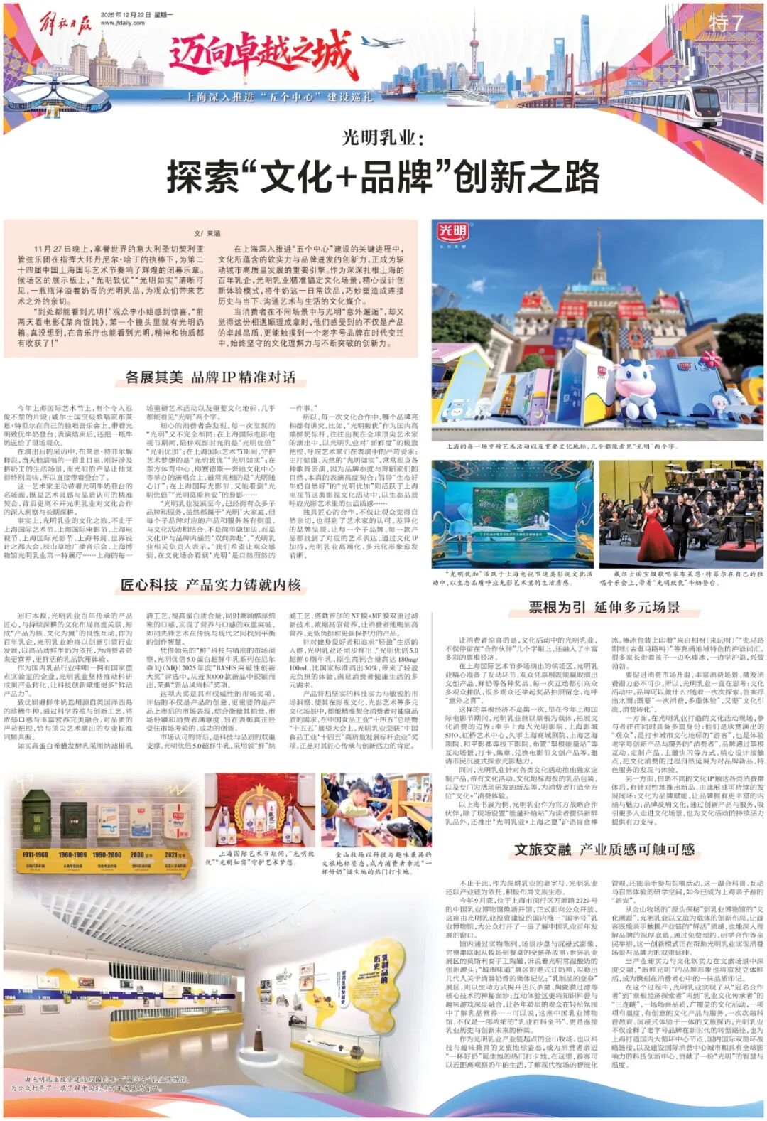 创新致远,步履不停。光明乳业将不断拓展品牌与文化IP融合的广度与深度,为上海打造国内大循环中心节点、国内国际双循环战略链接,以及建设国际消费中心城市和具有全球影响力的科技创新中心,持续贡献“光明”的智慧与温度。