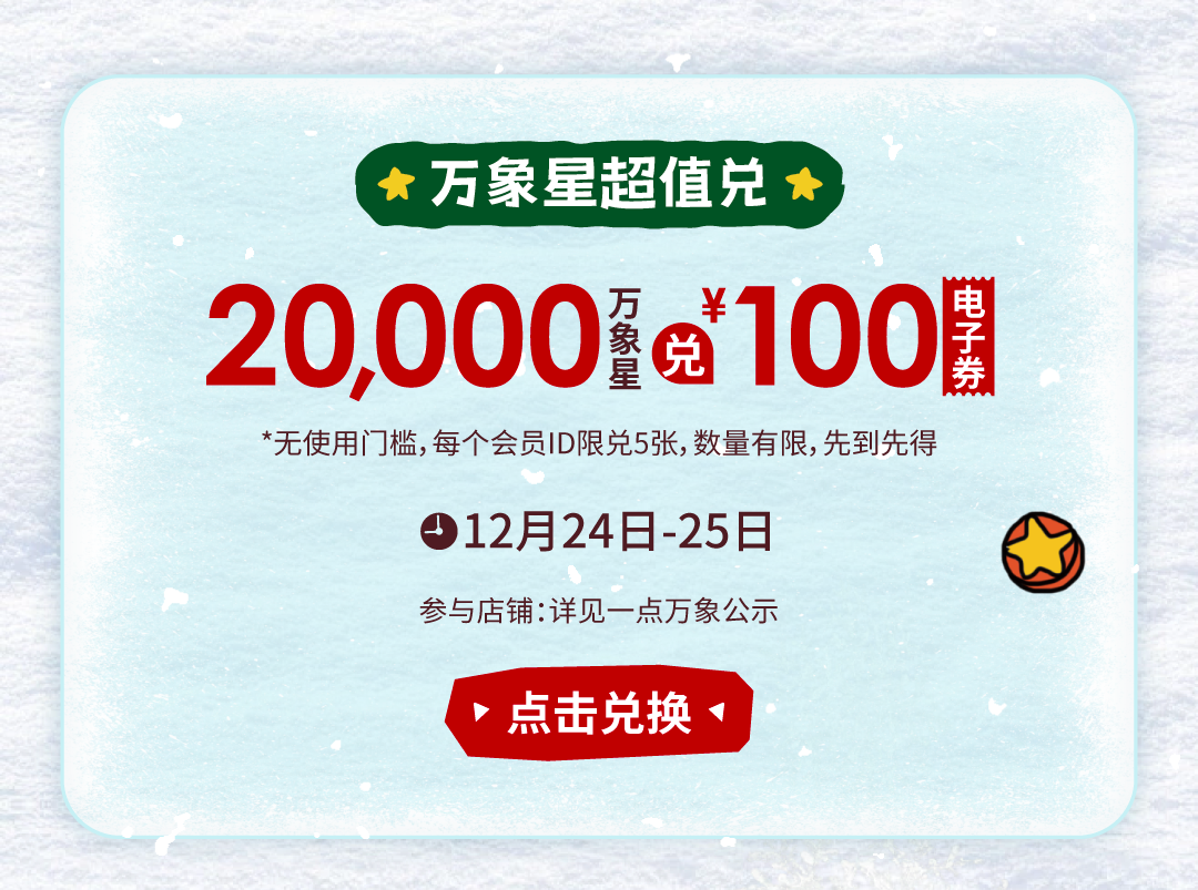 摘要:12/24-12/25,百分百万象年终SALE火热开启!