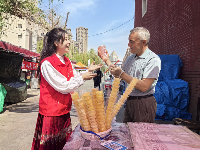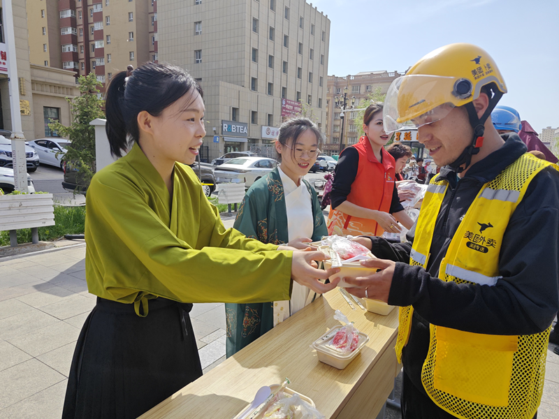 活动设置“爱心助捐”区,中亚风情街、友谊路等商圈企业捐赠抓饭和凉菜120余盒、奶茶800余杯、果蔬150公斤,受益户外劳动者1100余人。