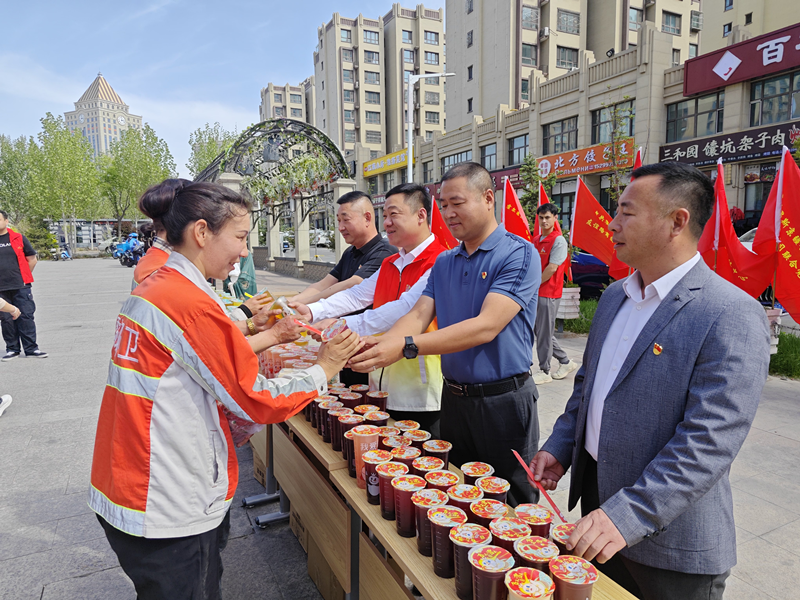 4月29日,卡拉苏街道联合“伊家人”成员单位开展“致敬劳动者 奋斗嘉年华”关爱户外劳动者志愿活动,通过送奶茶、霍尔果柿、爱心盒饭的形式,为500余名环卫工人、出租车司机、外卖员等户外劳动者送上“娘家人”的关爱。