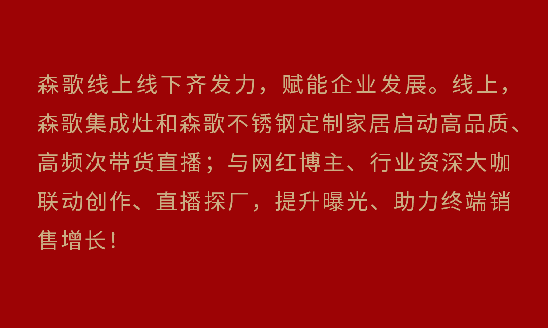 文章内容来源于公众号:森歌集成灶,点此可查看原文,内容版权归相关企业所有,本网站仅供交流学习。若涉及版权问题或存在侵权情况,请及时与我们联系,我们将第一时间进行删除处理。
