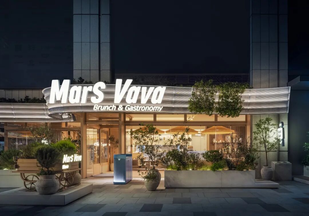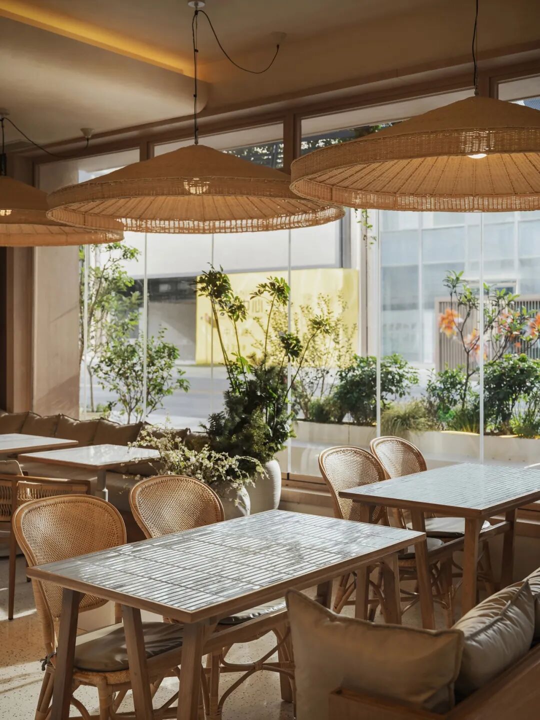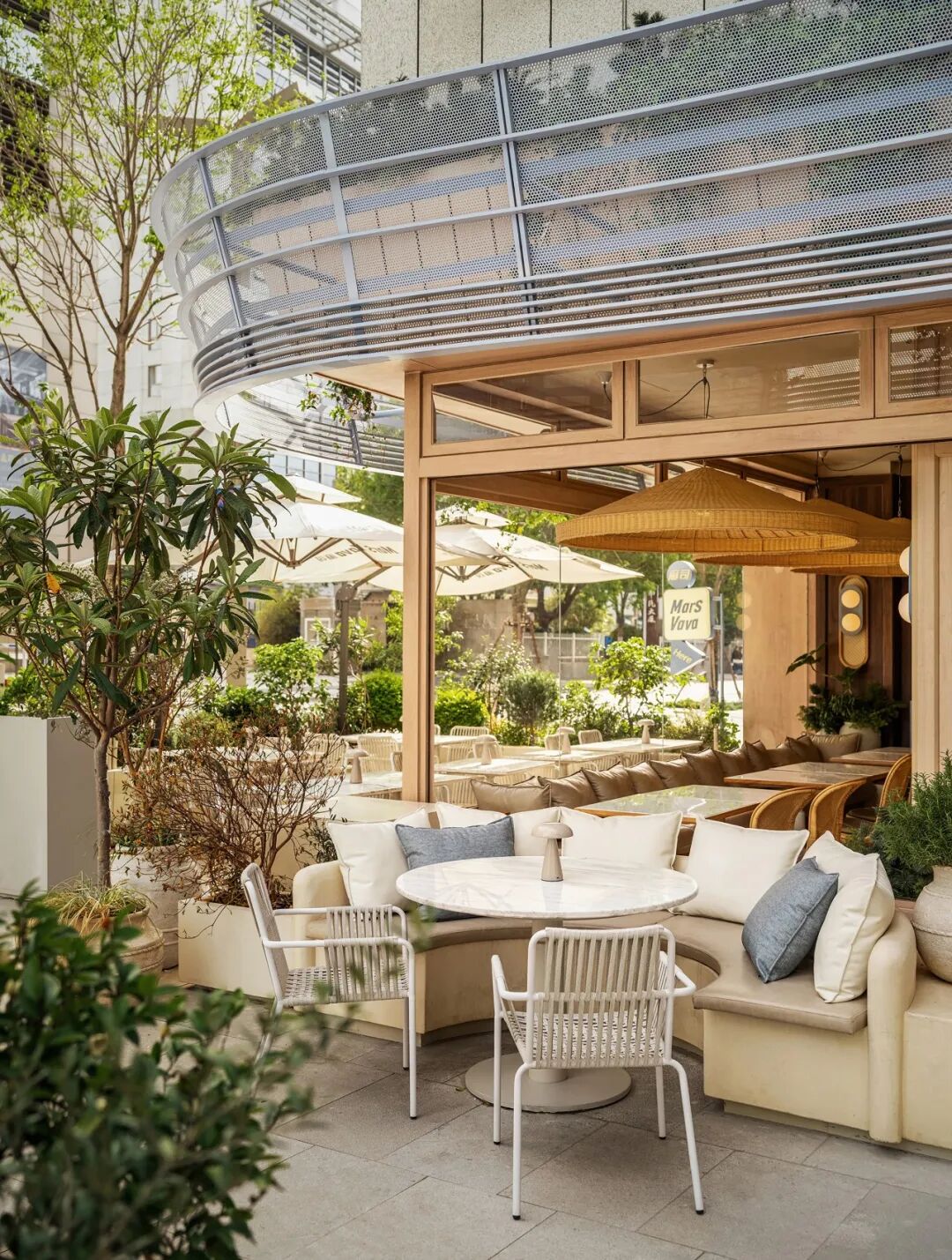 在 Mars Vava 项目中,外摆区采用可拆卸的挡风装置与移动绿植隔断,冬季形成半围合空间,夏季则完全打开。这种灵活设计让空间能够顺应气候变化,始终保持舒适性。