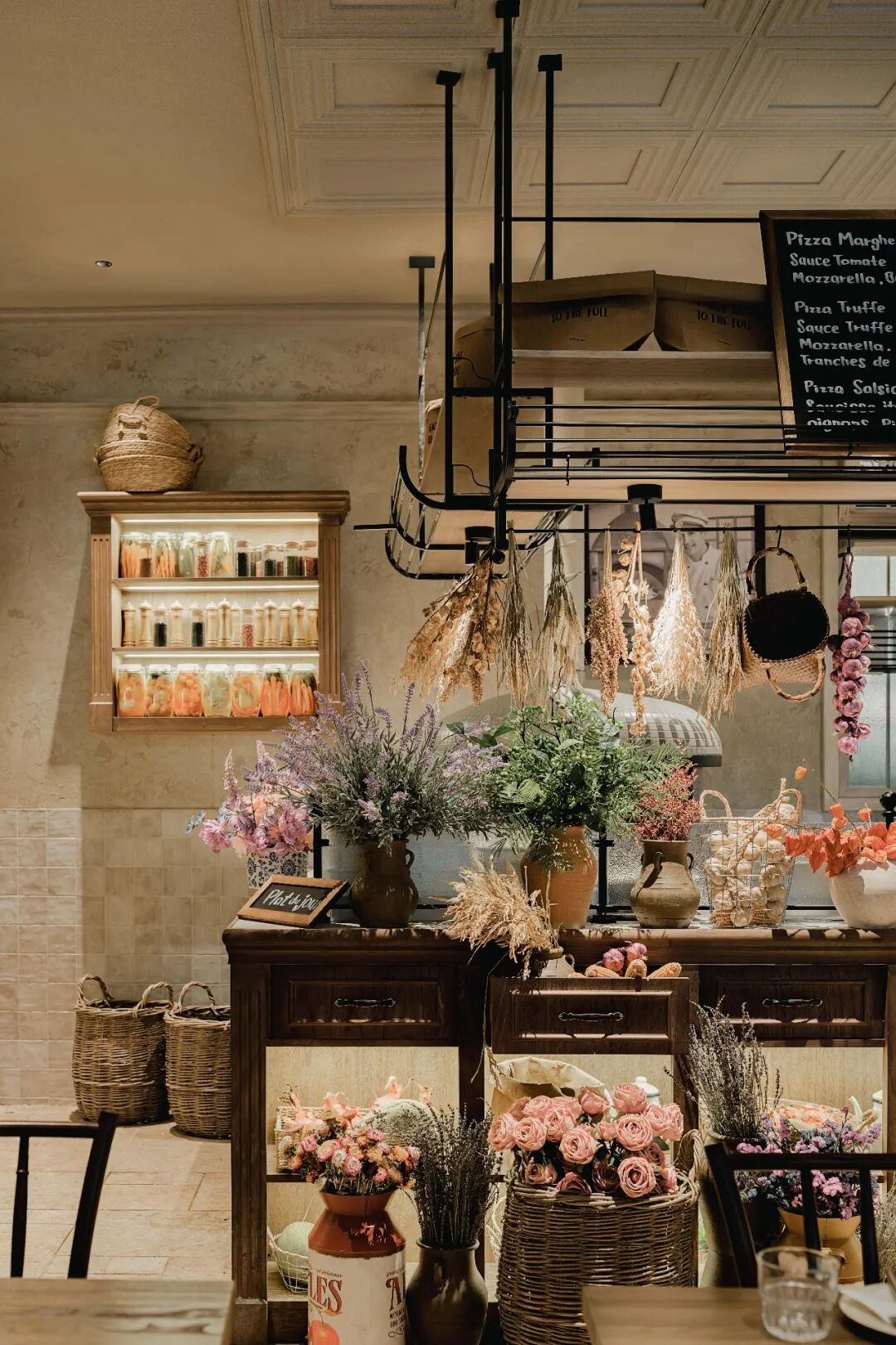 叙事场景的打造不是风格的堆砌,而是从概念到细节的高度统一。基于同一品牌,ONIONIO 深圳店打造“南法庄园主之家”,上海店定位“松露猎人的森林木屋”。两店的色彩、材质、灯光与动线,均围绕各自主题故事线展开。