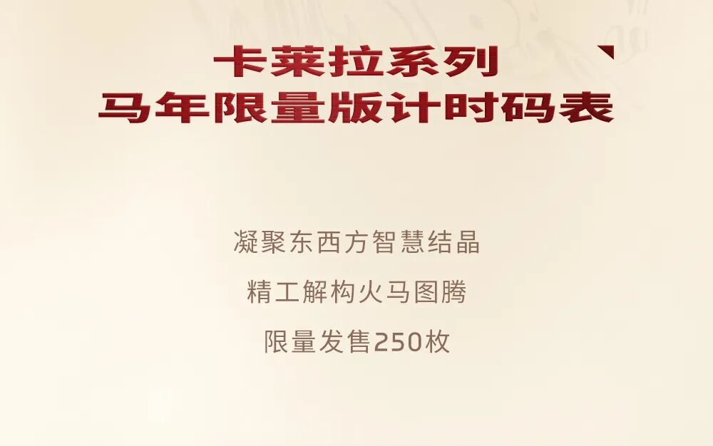 摘要:全新卡莱拉系列马年限量版计时码表,融汇精湛工艺,骏马之姿凝于腕间