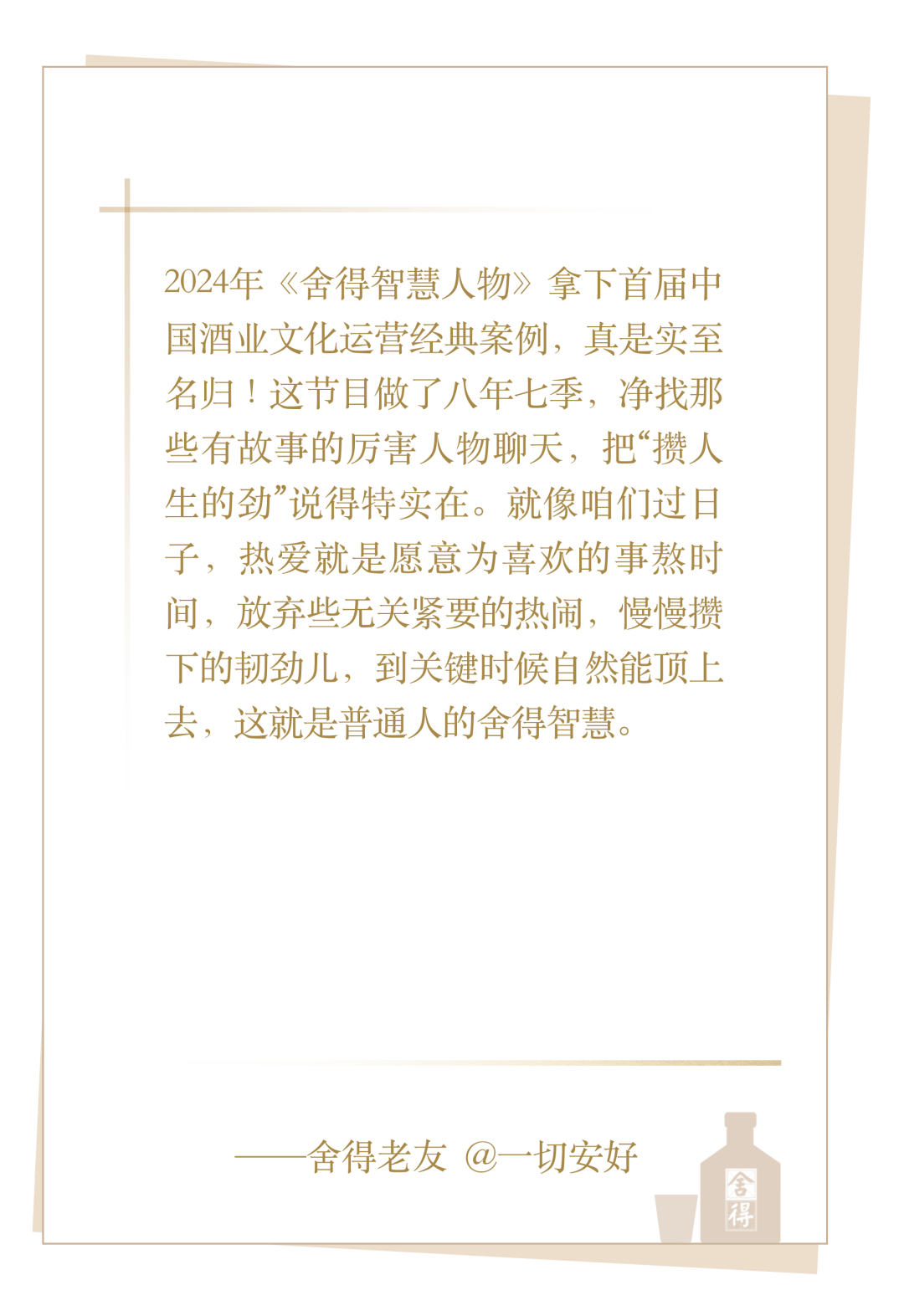 逢9开酒·老友栏目—舍得老友说