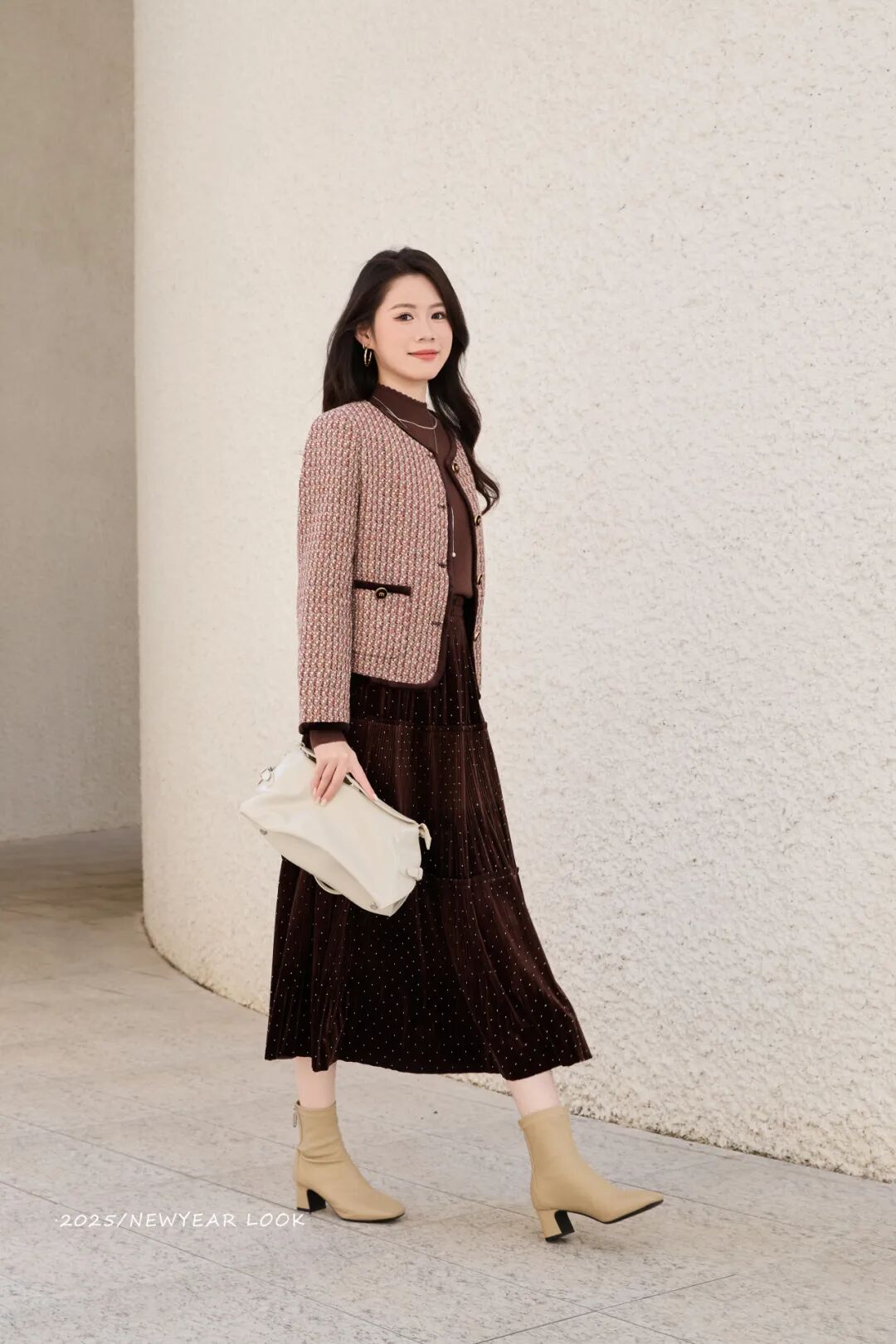 跨年之夜,需要一点浓烈的仪式感。不是张扬,而是内心饱满的外显。一件足够纯粹的红,仿佛积蓄了一整年的热望,在夜色与灯火中,静静燃烧。它让你相信,有些姿态不必喧哗,存在本身,即是光芒。