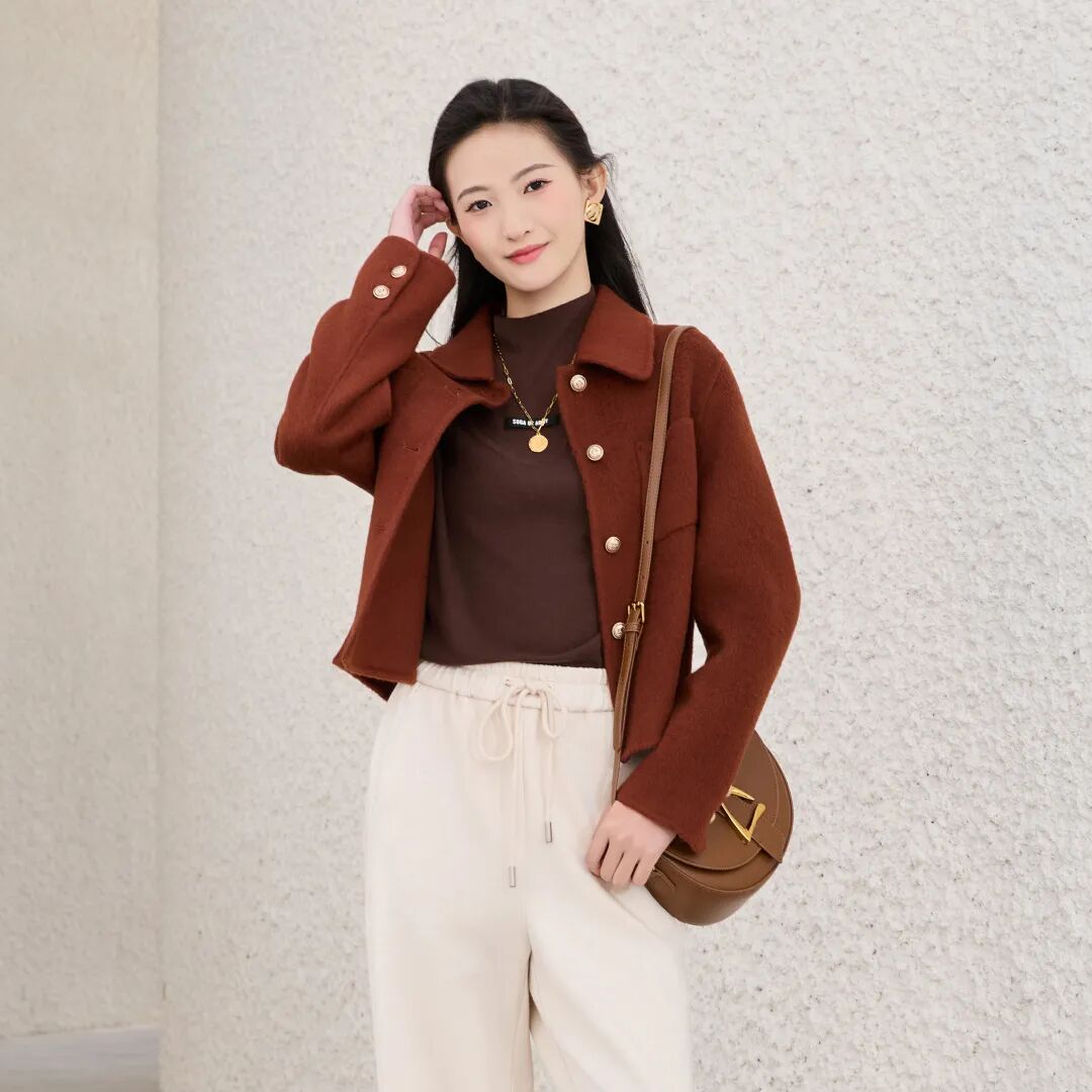 都市的节奏,有时需要一份轻盈的掌控感。短款大衣的精妙,在于塑造干净的身形界限,亦留给步履足够的空间。无论是系上围巾的温柔,还是圆领的雅致,都在诉说同一件事:真正的优雅,从不拖沓。