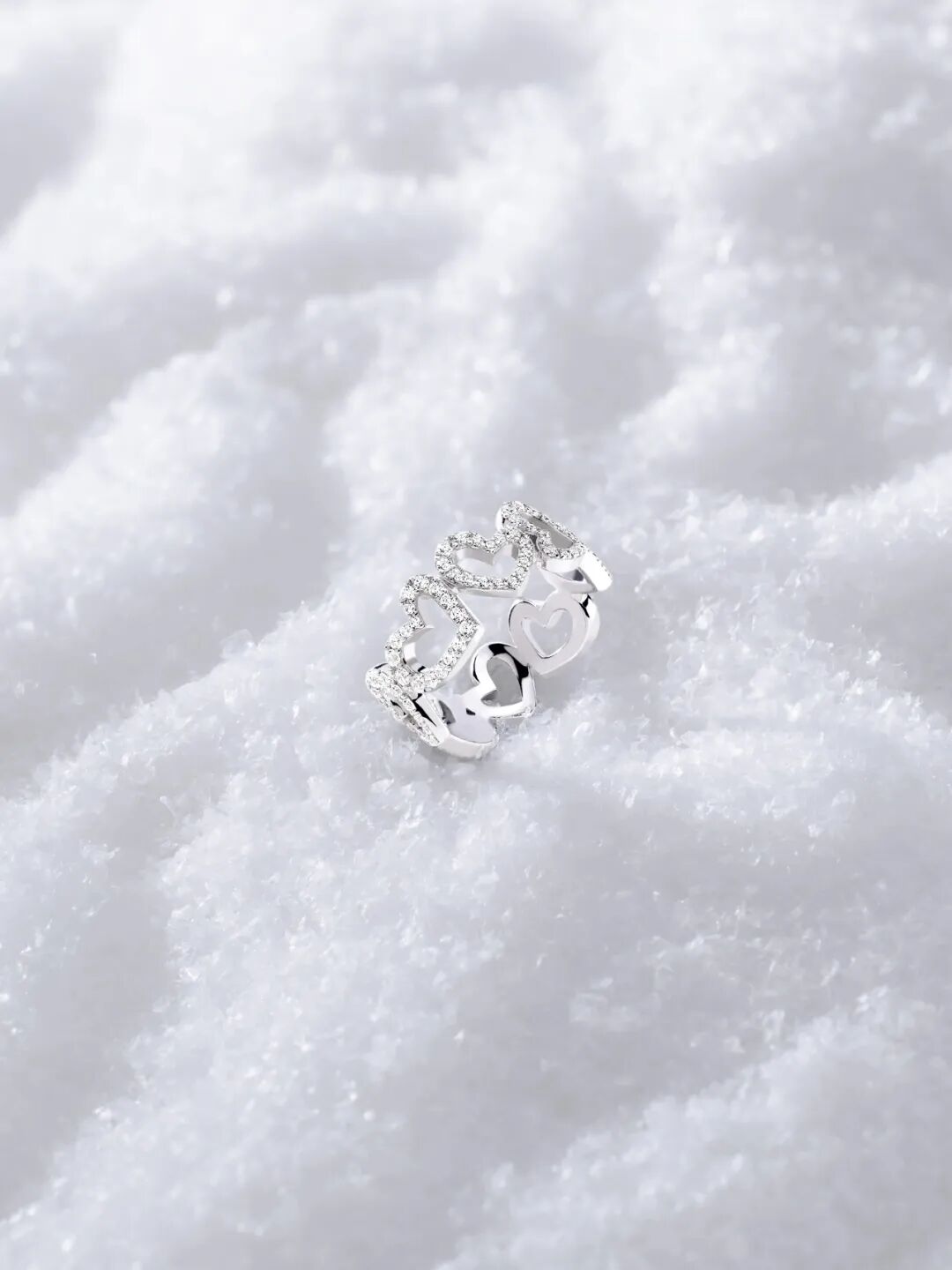 心形系列则重构了关于“爱”的视觉语言,让大小不一、错落有致的爱心如音符般跳跃排列,在璀璨光芒中谱写出了一段灵动而现代的浪漫旋律。