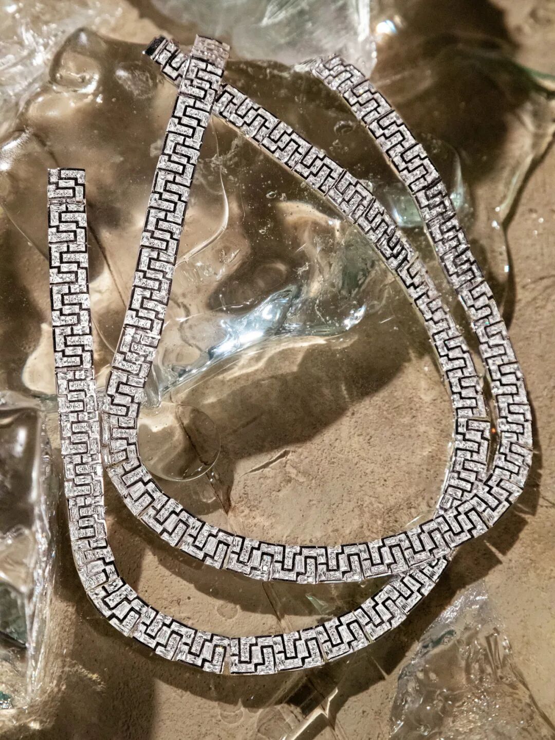 而 Ice珠宝单品则更具个性张力,它以曲折的金属线条勾勒出冰裂般的层次,如同冰块般晶莹的几何镂空设计,在动静之间延展金属光泽,展现出一种清醒而自信的优雅。