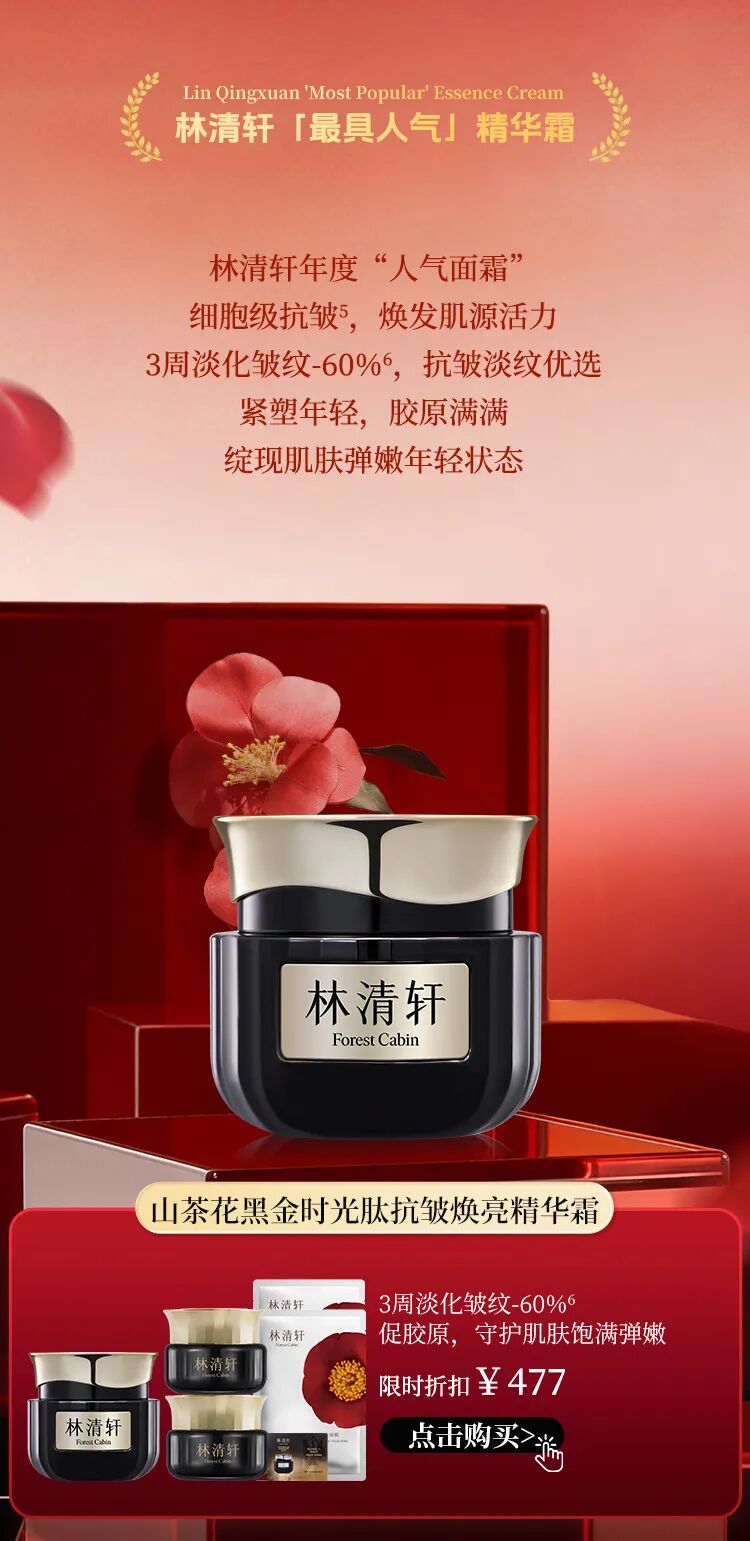6.数据来源于第三方测试机构,基于30位41-59岁中国敏感皮肤受试者使用林清轩山茶花黑金时光肽抗皱焕亮精华霜21天,通过仪器测试的结果,实际效果因人而异。