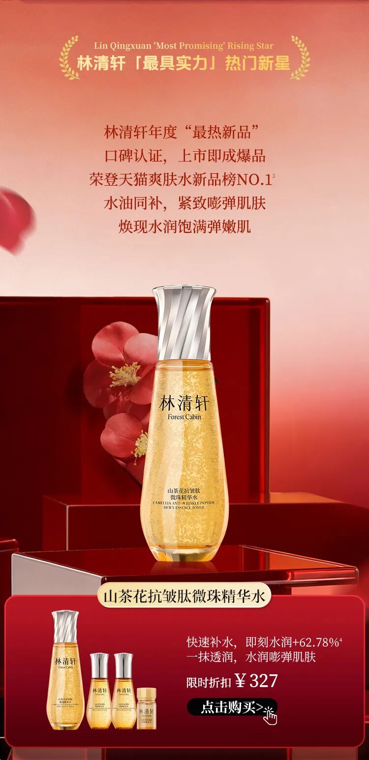 4.数据来源于第三方测试机构,31位23~45岁中国敏感肌受试者使用林清轩山茶花抗皱肽微珠精华水10min后的仪器测试结果,实际使用效果因人而异。