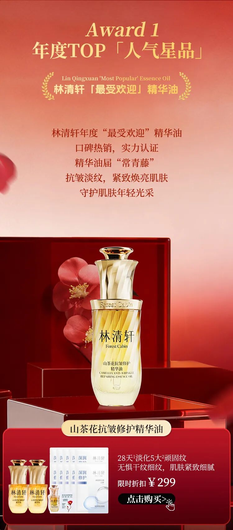 1.数据来源于第三方检测机构,基于32名35-60岁受试者使用林清轩山茶花抗皱修护精华油28天后的仪器测试结果,实际使用效果因人而异。