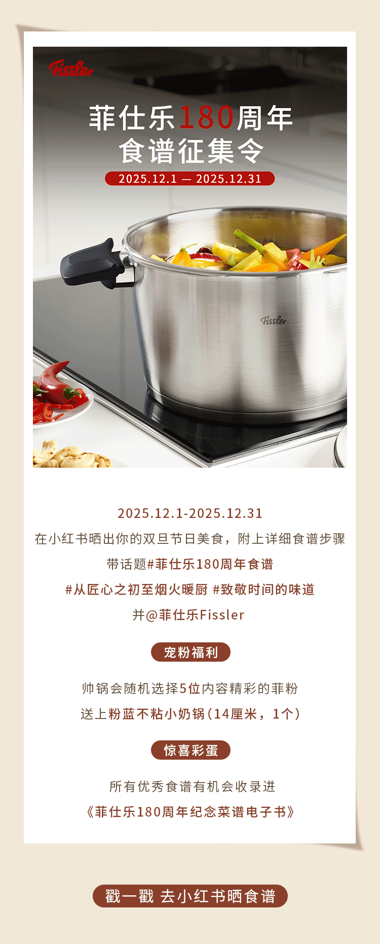 文章内容来源于公众号:德国菲仕乐Fissler,点此可查看原文,内容版权归相关企业所有,本网站仅供交流学习。若涉及版权问题或存在侵权情况,请及时与我们联系,我们将第一时间进行删除处理。