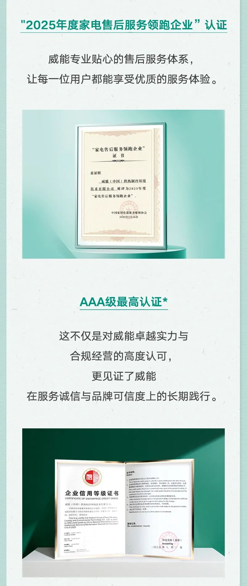 ②数据来源于威能内部统计数据,具体指截至到2024年12月31日,威能(中国)供热制冷环境技术有限公司在全国各地开设的分公司的数量的大致数量。约2000家威能展厅是指包括威能中国及其代理商开设的威能展厅