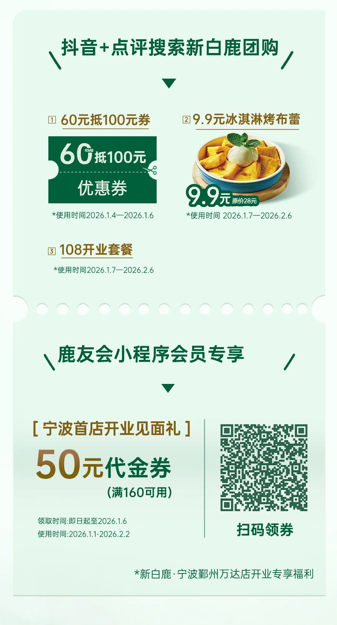 摘要:#新白鹿宁波首店\x0d\x0a“鲜”启2026,1.4盛大启幕\x0d\x0a元旦试营业,欢迎光临!