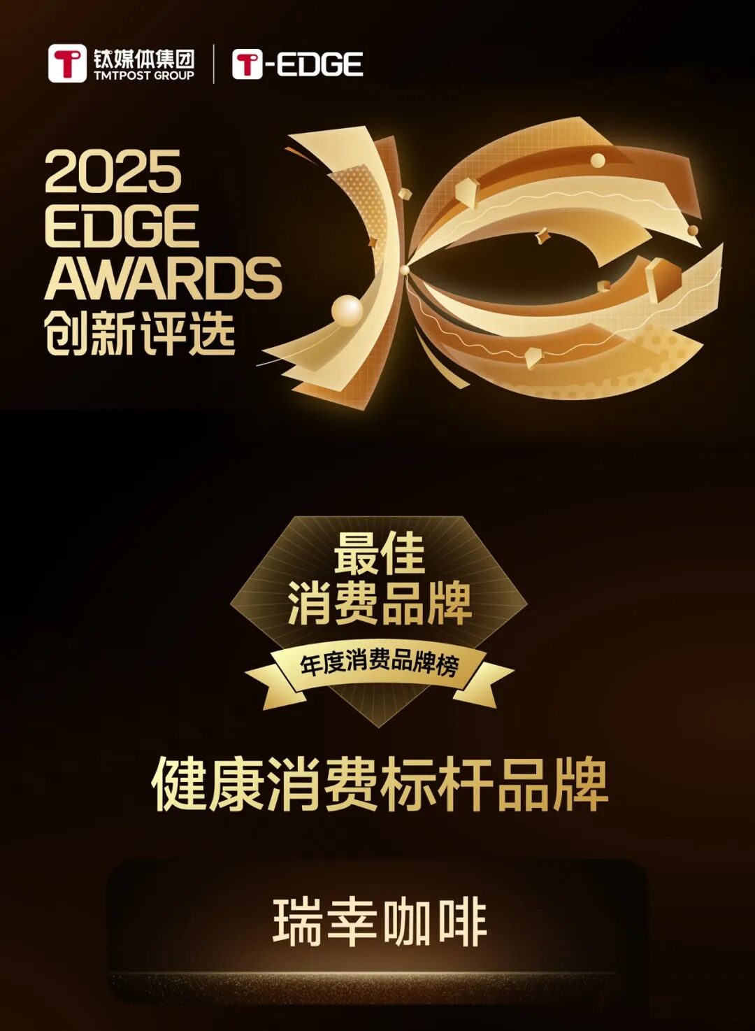 「最佳消费品牌」旨在表彰在消费领域潜心深耕的品牌,不断拓展创新边界,发挥行业基石作用,在发展规模、行业影响力等维度持续抬高行业天花板,助推中国品牌影响力。瑞幸咖啡持续推动产品创新,深化咖啡健康价值的研究,带动行业从“风味”向“健康”的消费升级。通过“三个100”标准、“干净配方工程”等实践,持续引领行业的健康可持续发展。