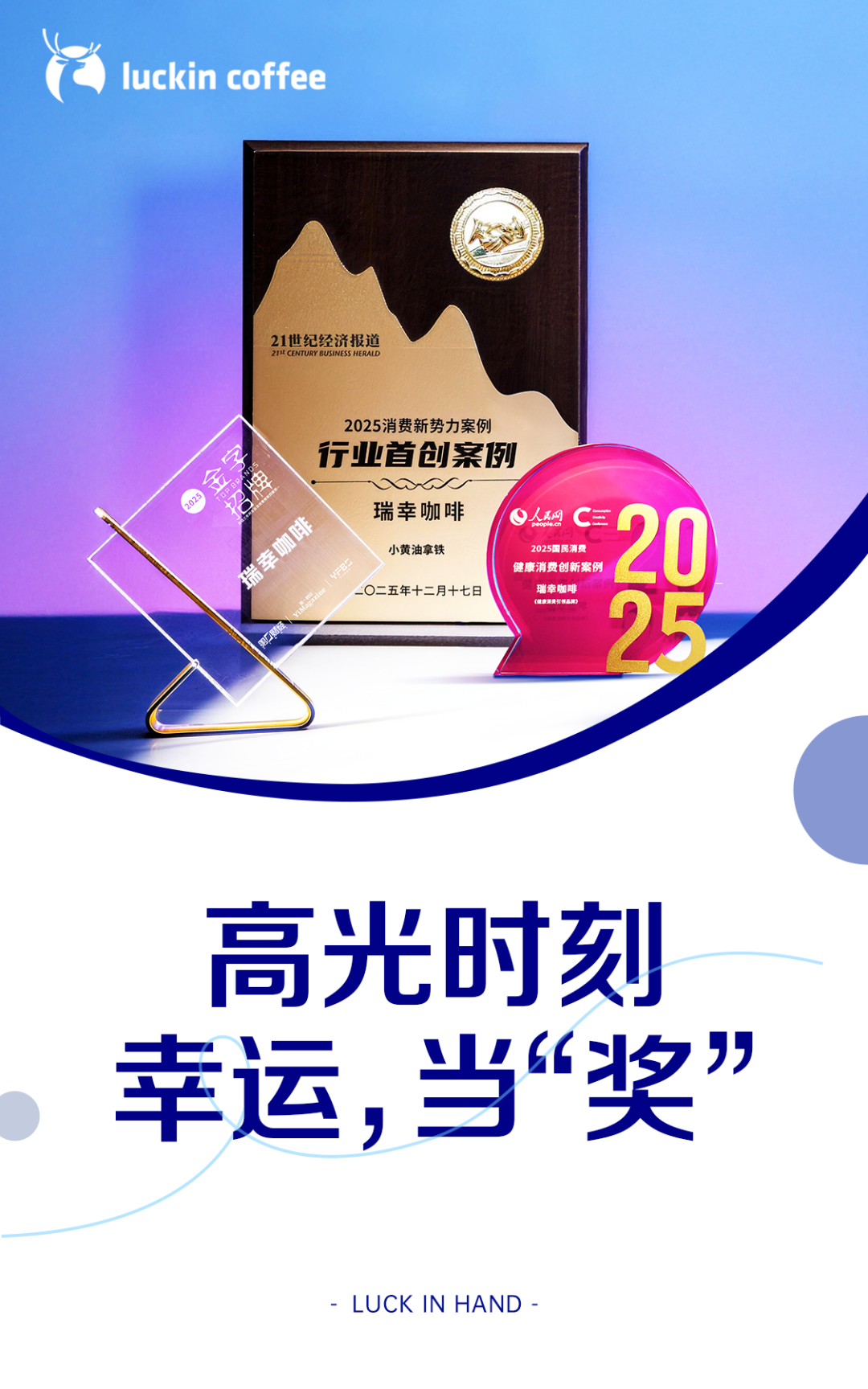 由人民网主办的 2025 国民消费大会评选,聚焦质量、创新、影响力等核心,兼顾科技赋能与社会责任,经多渠道推选、专家评审,重实绩与前瞻性。瑞幸咖啡凭借在健康饮品领域的持续创新、标准引领及市场表现,连续三次入选创新案例,今年成功斩获“健康消费引领品牌”奖项,成为行业健康化升级的转型标杆。