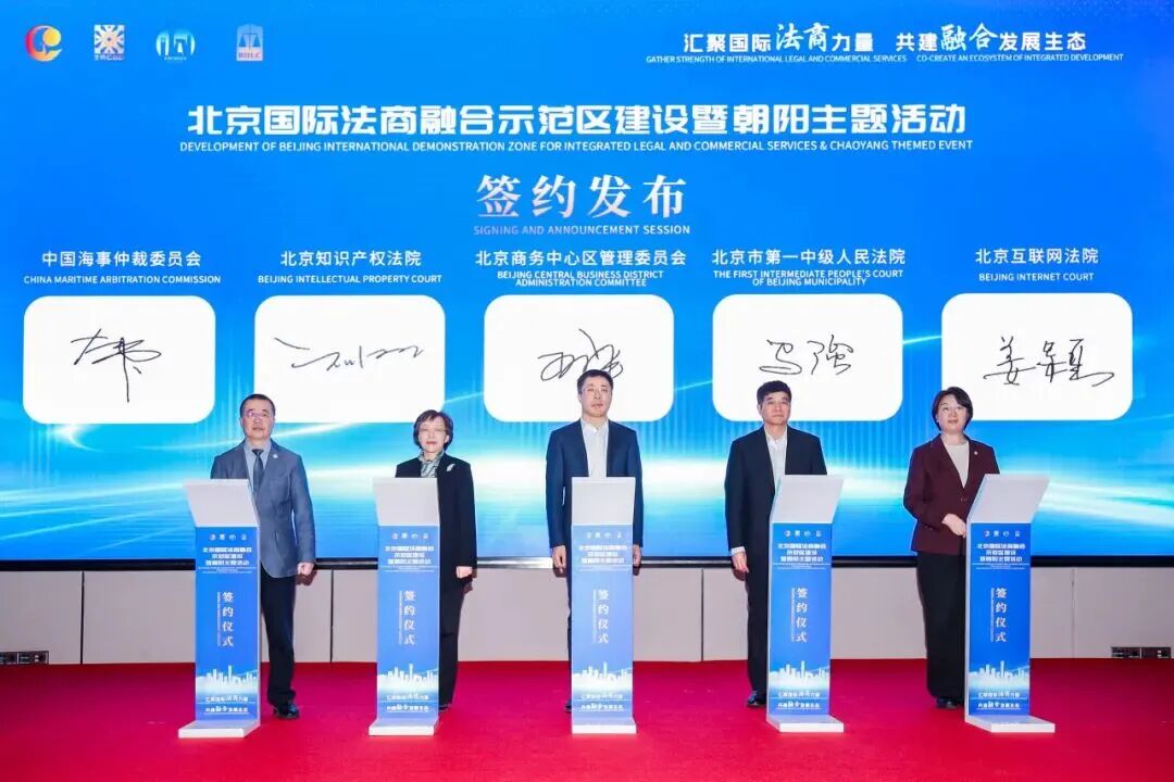 由北京市发展和改革委员会、北京市朝阳区人民政府主办,北京商务中心区管理委员会承办的北京国际法商融合示范区建设暨朝阳主题活动在京举办。北京互联网法院党组书记、院长姜颖应邀出席活动,并参加签约和授牌仪式。北京互联网法院与北京市第一中级人民法院、北京知识产权法院等共同加入CBD法治服务矩阵。