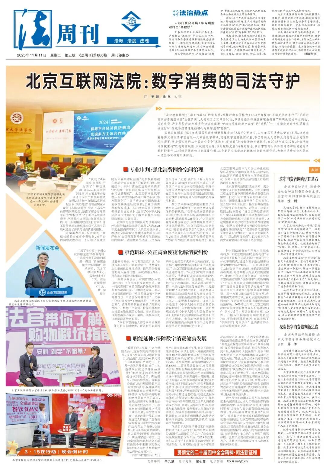 北京互联网法院综合审判三庭(少年法庭)副庭长经雯洁被《中国妇女》杂志选为封面人物并发表文章《“首互未来”,护航“少年的你”》。