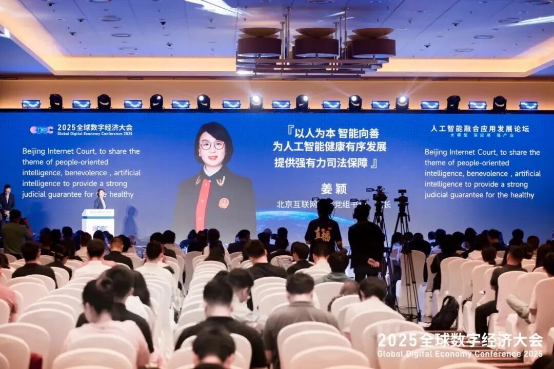 2025全球数字经济大会的重要活动——“人工智能融合应用发展论坛”在国家会议中心举办,北京互联网法院党组书记、院长姜颖应邀作主旨发言。