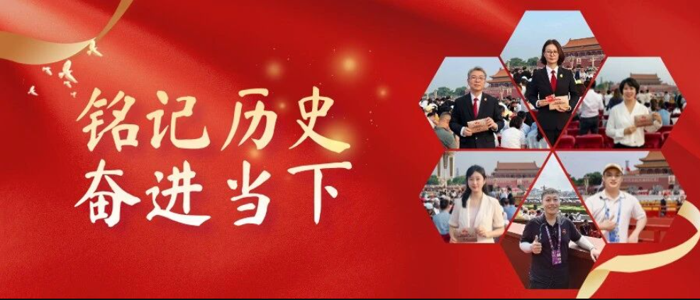 北京互联网法院干警代表参加纪念中国人民抗日战争暨世界反法西斯战争胜利80周年大会。