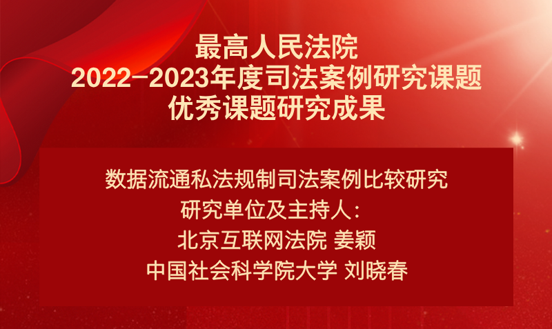 北京互联网法院党组书记、院长姜颖主持的“数据流通私法规制司法案例比较研究”获评2022-2023年度司法案例研究课题优秀课题研究成果。该课题由北京互联网法院与中国社会科学院大学共同申报。