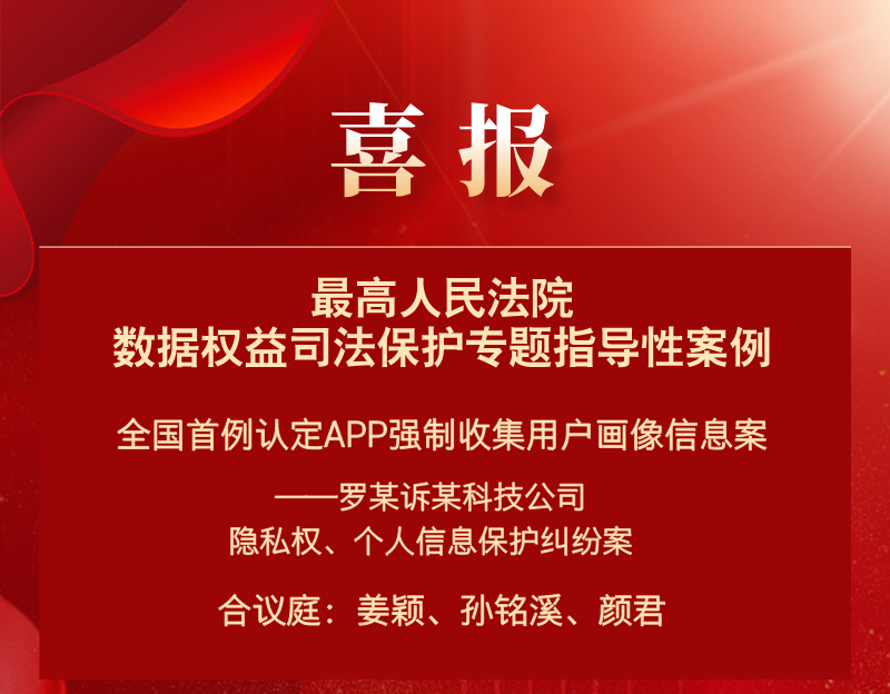 “全国首例认定APP强制收集用户画像信息案”入选最高人民法院数据权益司法保护专题指导性案例。