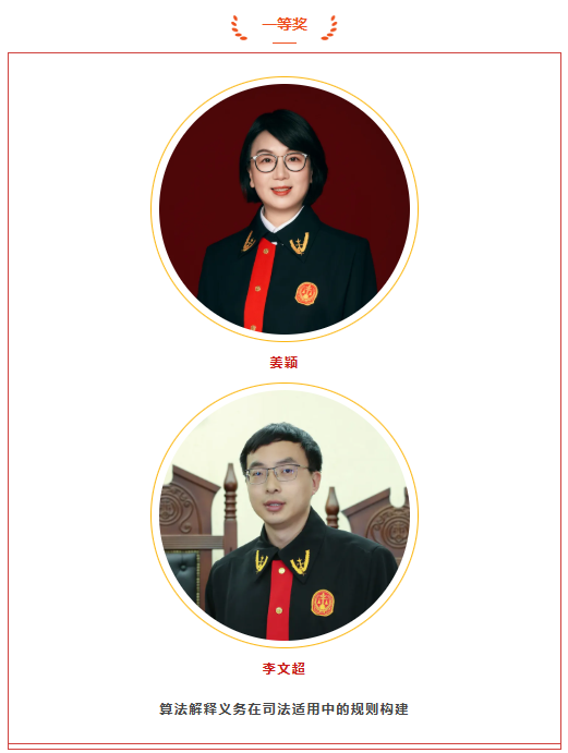 北京互联网法院党组书记、院长姜颖,审判管理办公室(研究室)主任李文超合作撰写的学术论文《算法解释义务在司法适用中的规则构建》荣获全国法院第三十七届学术讨论会一等奖。