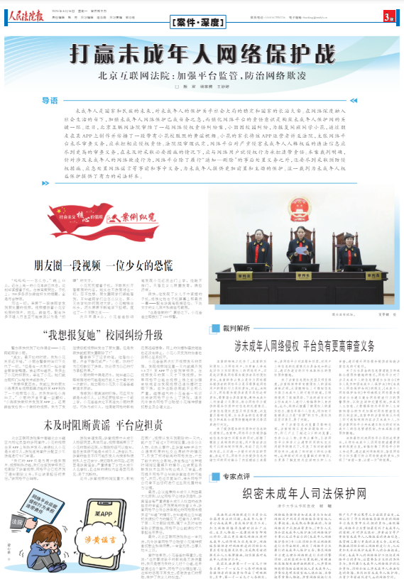 由最高人民法院指导、中国女法官协会报送的“北京互联网法院依法追究科技公司网络侵权连带责任案”入选第六届依法维护妇女儿童权益十大案例。