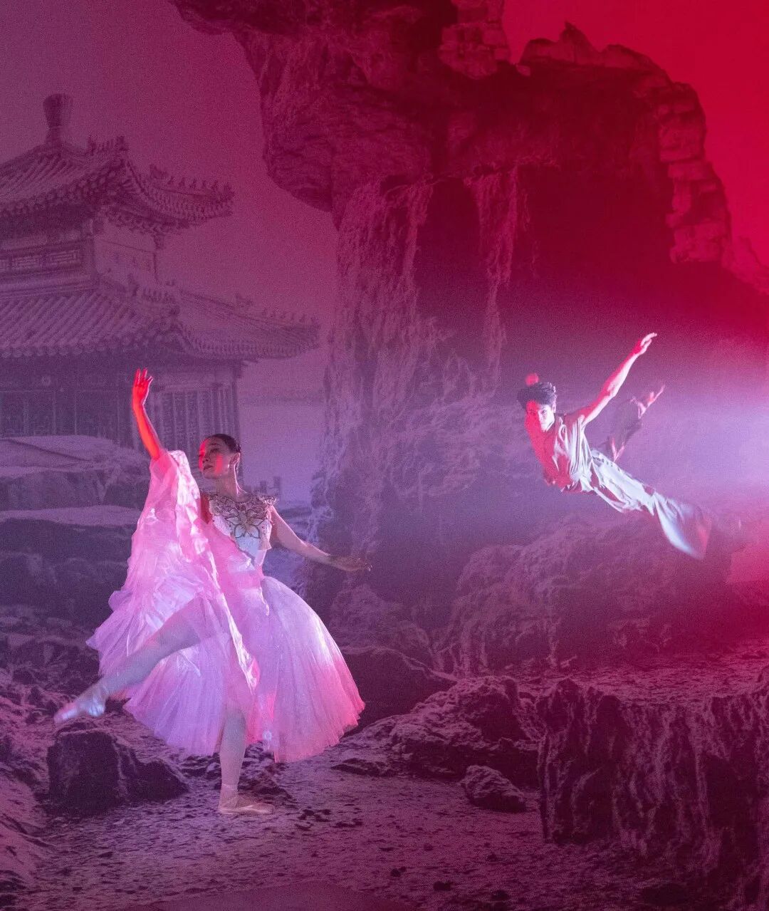 JR一直在反复探寻“墙”的背后,而在这里,颐和园被赋予了一种纪念碑式的存在。这种想象力让观众在当代艺术的瞬时体验与古老文明所承载的精神层面之间,感受到强烈的张力。JR选择颐和园是因为其所代表的是中国传统中人与自然、建筑与精神的理想关系,这种关系在与工业厂房的并置中,也映射出城市化进程的变迁。在开幕现场,中国舞者在展厅“悬崖”边缘起舞,身影投射至凉亭之中,使建筑的身体性和象征性合二为一。