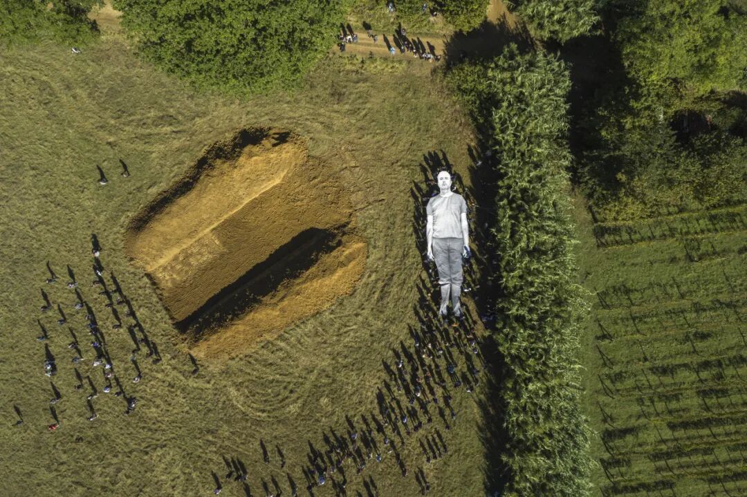 下图:“农民布道,游行,圣吉米那诺,意大利”,活动现场,2020年,摄影:JR