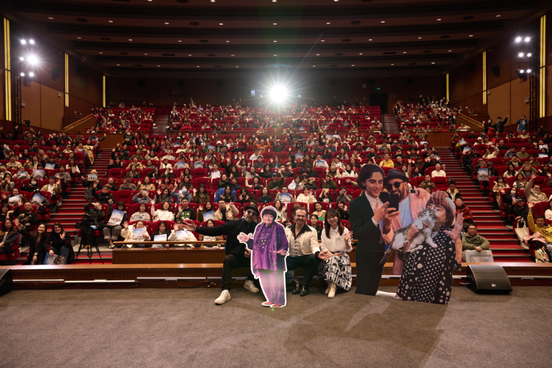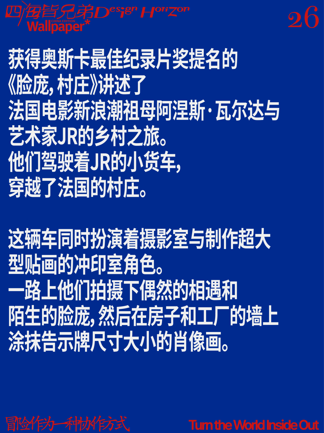 2017年《脸庞,村庄》拍摄结束后,JR带着瓦尔达的人形立牌在各地出现,Lorenzo将他和立牌一并举起,留下了那张经典合影;而在北京的放映现场,一位观众同样带来了瓦尔达的立牌,JR惊喜地将“瓦尔达”揽入怀中,与Lorenzo完成了整场映后对谈。共同的幽默感、相似的灵魂底色,以及对世界相似的观看方式,构成了他们合作关系中坚实、持久的基础。