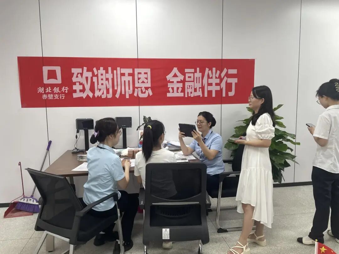9月5日,湖北银行赤壁支行创新服务模式,组建专业金融服务团队,走进赤壁市第六小学开展“金融进校园”专项服务活动。考虑到教师日常教学任务繁重,难以抽出时间前往银行网点办理业务,湖北银行赤壁支行第一时间与学校沟通对接,组建专项服务团队,携带移动终端为在校教师提供工资卡激活等金融服务,并精心准备了特色节日礼品。