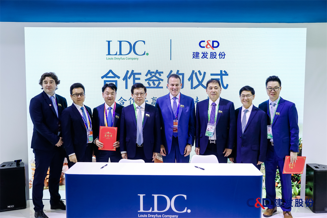 展会期间,建发股份农产品集团与路易达孚签署年成交25亿美元农产品的战略合作协议。路易达孚全球首席执行官Michael Gelchie,全球首席商务官周学军,全球首席战略官Thomas Couteaudier,北亚区首席执行官陈嘉渊;建发集团党委书记、董事长许晓曦,建发股份董事长林茂,建发股份副总经理兼消费品集团总经理王志兵,建发股份副总经理兼农产品集团总经理吕荣典等共同出席仪式并见证签约。