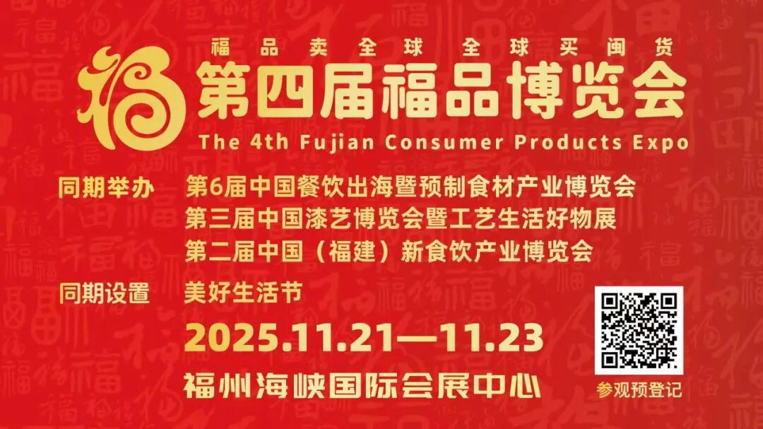 11月21-23日,第四届福品博览会在福州海峡国际会展中心举办。本届展会聚焦“福品卖全球,全球买闽货”,展览面积达4万平方米,构建“1+3”模式,即打造一个美好生活节,设立三大专业子展区——第6届中国餐饮出海暨预制食材产业博览会、第三届中国漆艺博览会暨工艺生活好物展、第二届中国(福建)新食饮产业博览会,专业化、市场化、国际化程度再上新台阶。