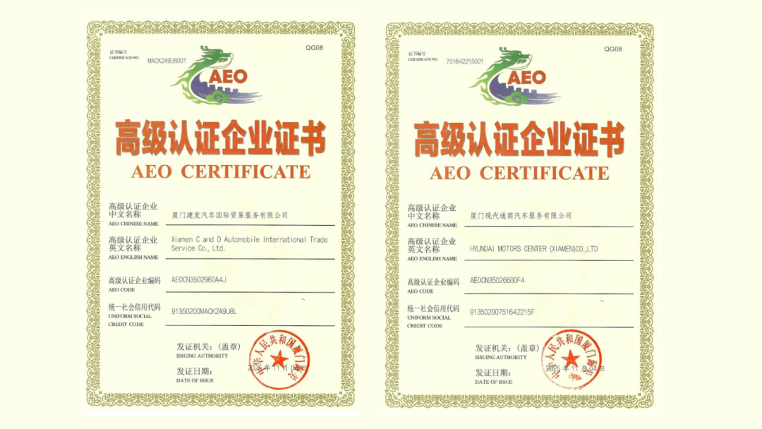 近日,建发股份所属建发汽车旗下两家公司——厦门现代通商汽车服务有限公司与厦门建发汽车国际贸易服务有限公司获授海关“AEO高级认证企业”资质,标志着建发汽车在进出口信用体系建设方面迈上新台阶。