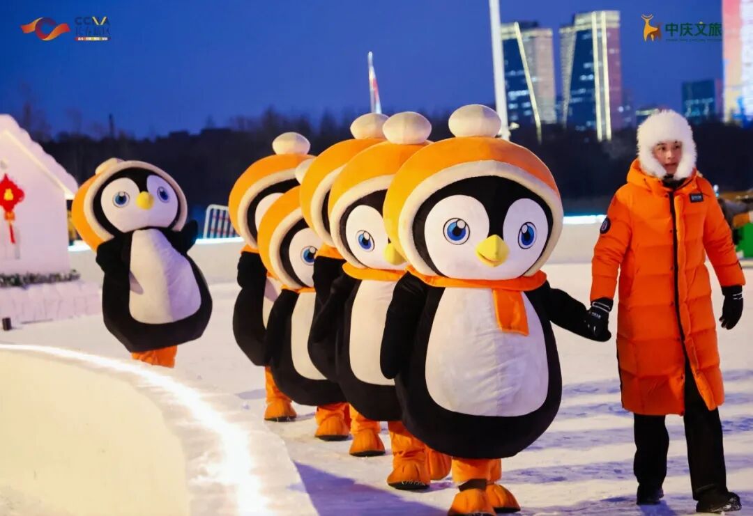 今年新增“太空企鹅”科幻设定,雪乐园充分结合科技元素融合,通过仿生机器人、机器狗斗舞等表演,以及AI互动企鹅玩偶等文创产品,增强游客的科技互动体验。