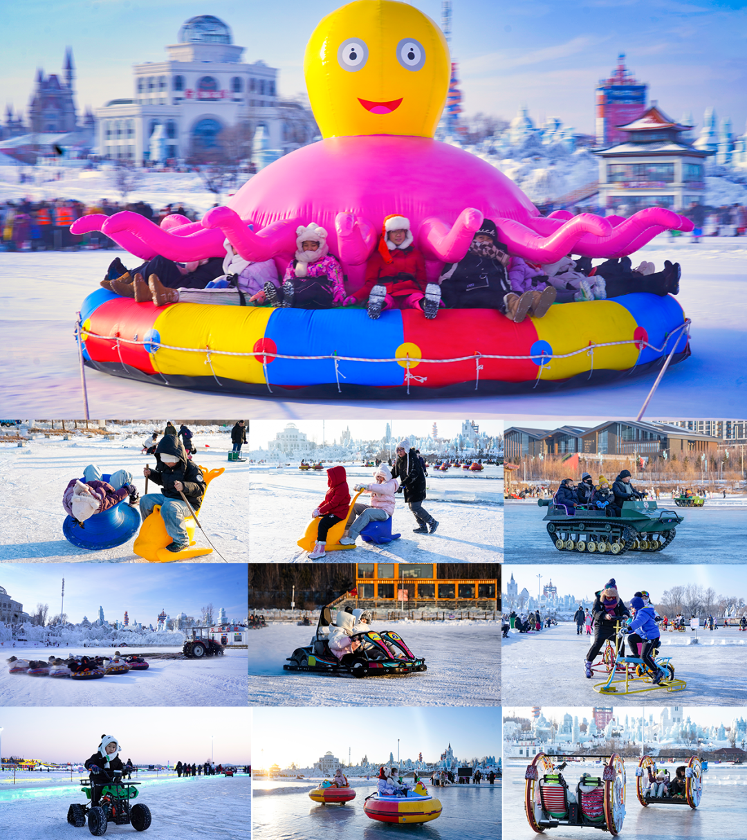 除了巧夺天工的冰雕雪雕,76万平方米的超级冰雪游乐空间藏着无数惊喜。