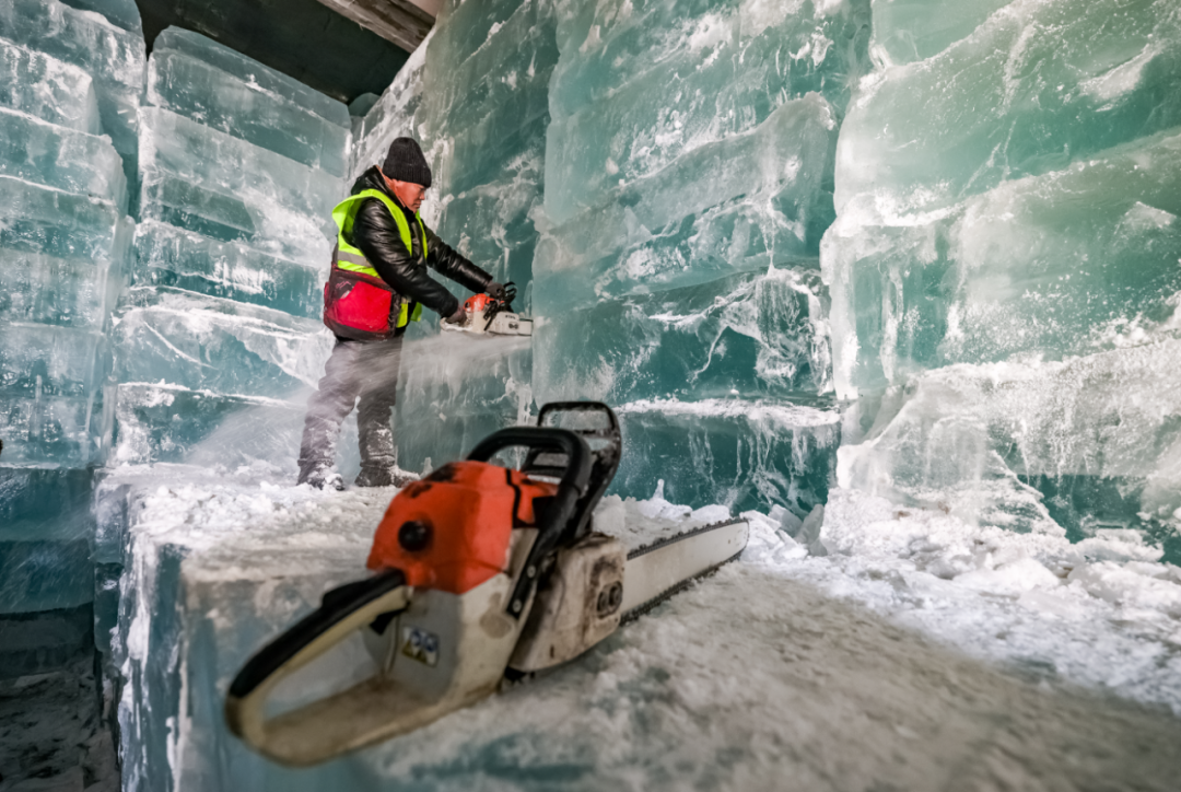 开窖取冰、电锯切割、挥锹起冰