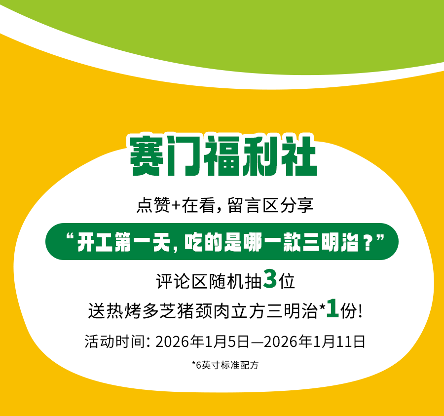 以上为创意图片,仅供参考。SUBWAY®️赛百味可以在法律允许的范围内对活动进行适当调整。SUBWAY®️ is a Registered Trademark of Subway IP LLC ©2025 Subway IP LLC.