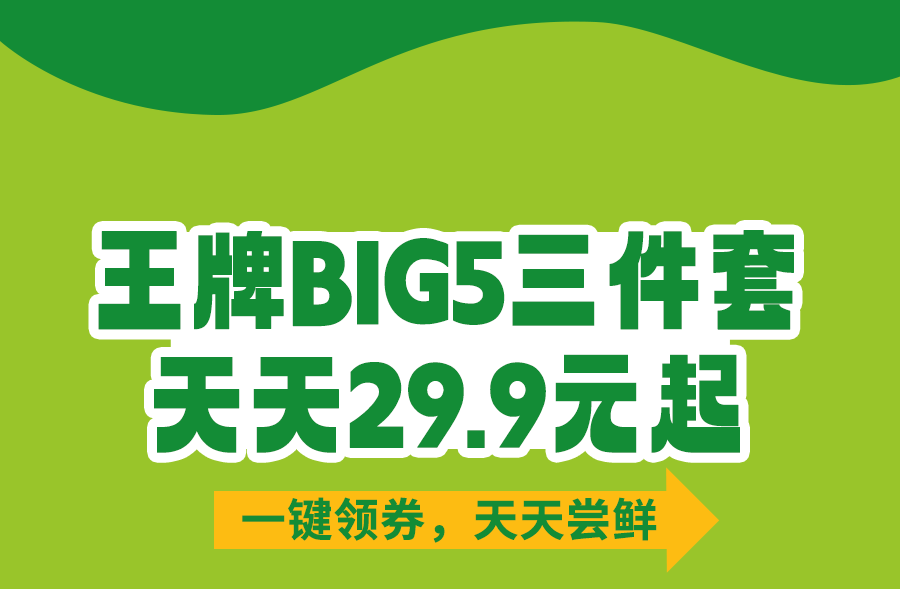 摘要:一周优惠一键领,王牌BIG5三件套天天29.9元起!