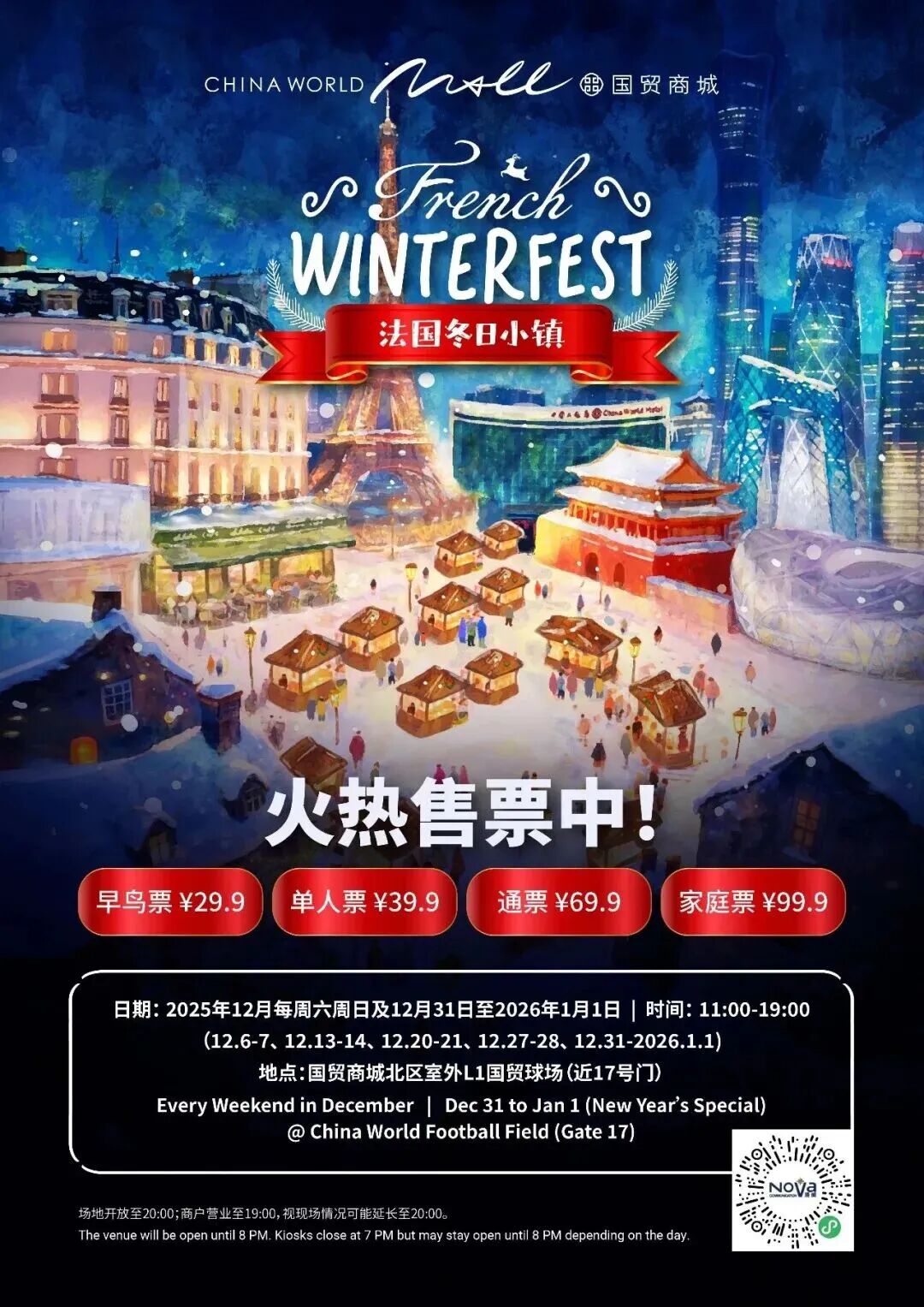 不用远赴巴黎,在国贸商城就能沉浸式体验法国冬日小镇的浪漫风情。北区室外球场化身浪漫小镇,艺术手作、游戏美食、音乐演出应有尽有,涵盖吃喝玩乐,每周主题不重样,趣味值直接拉满。
