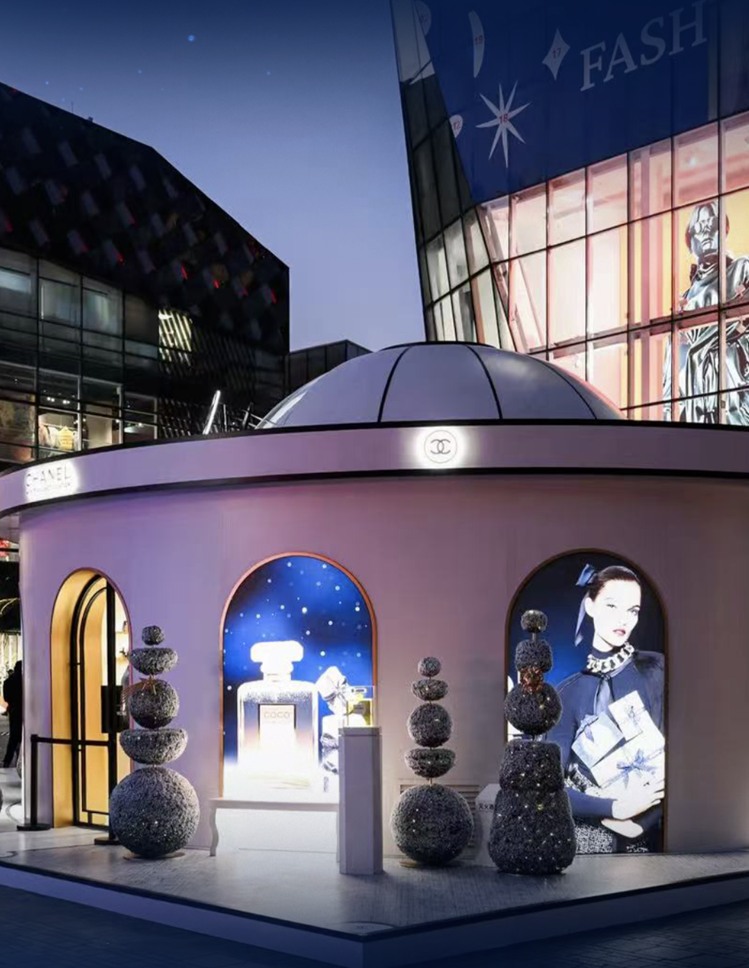 香奈儿星夜巡游更是点亮冬日,属于香奈儿星系的五大象征符号——狮子、彗星、山茶花、麦穗与珍珠,化作指引星辰,点亮节日寻礼之旅。璀璨的街灯,室内的星空屋顶,跟随着五大符号,每一次探索都指引你在星夜中遇见心仪的礼物,并赋予其美好的祝愿和含义。