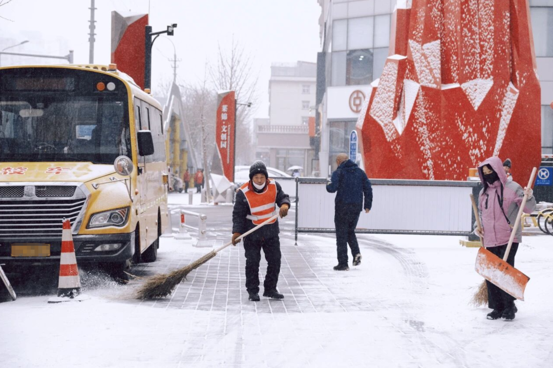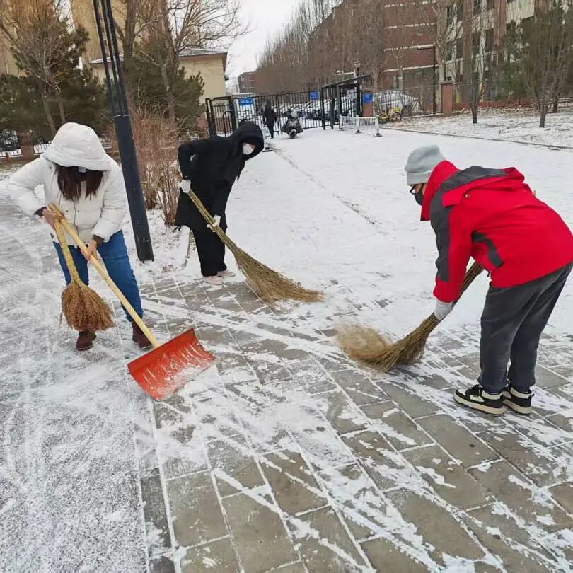把团结写在了扫雪的行动上