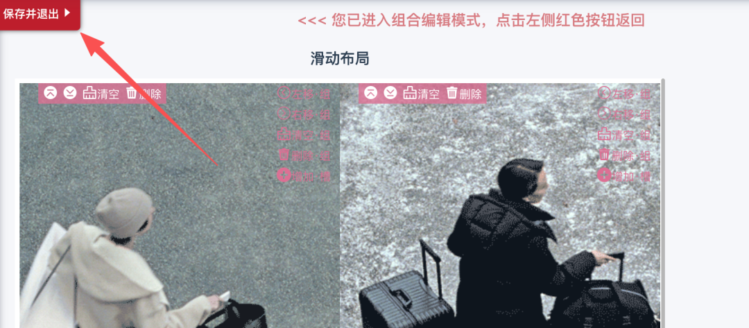 点击左上角红色「保存并退出」按钮,退出组合编辑模式。