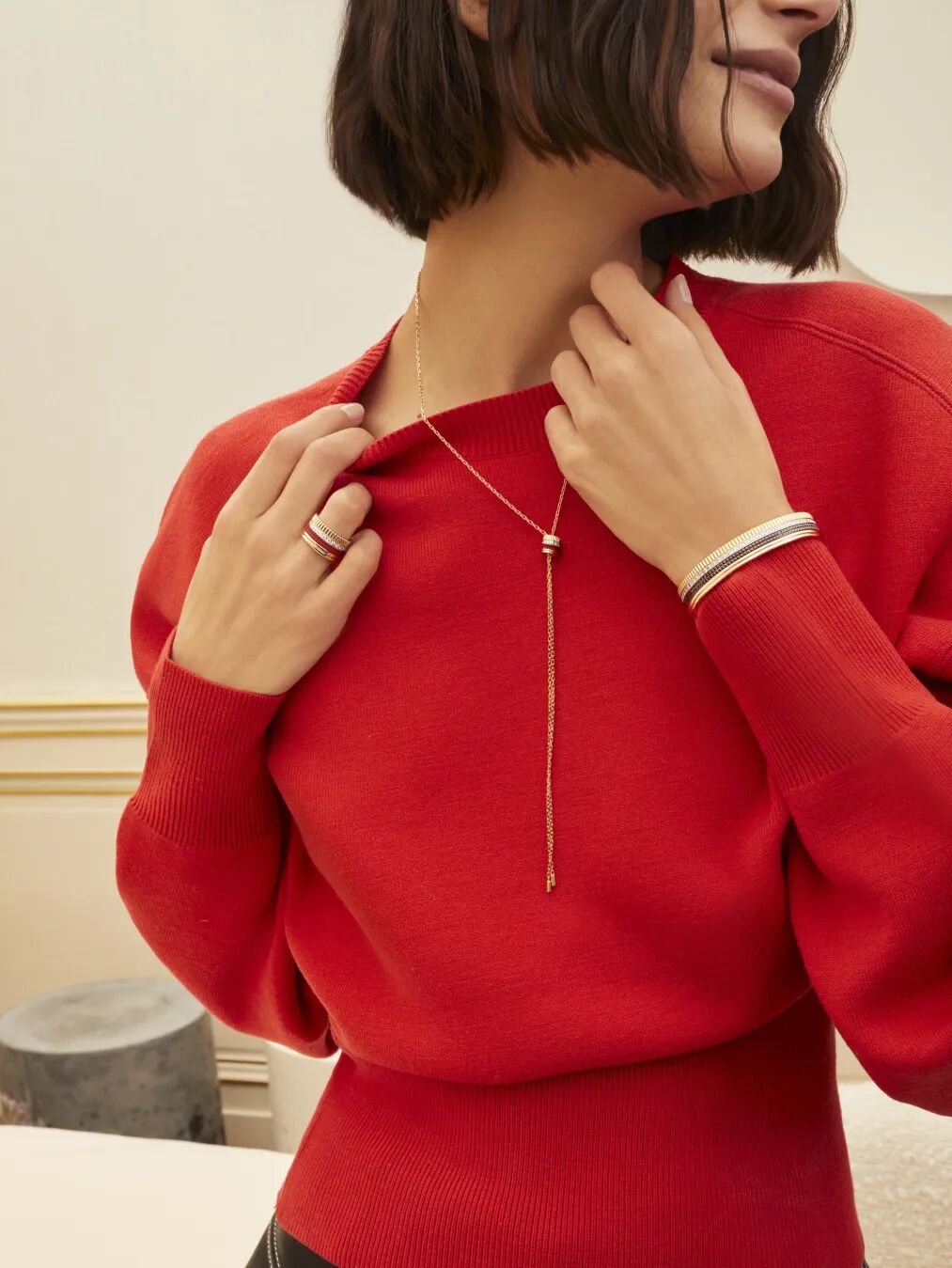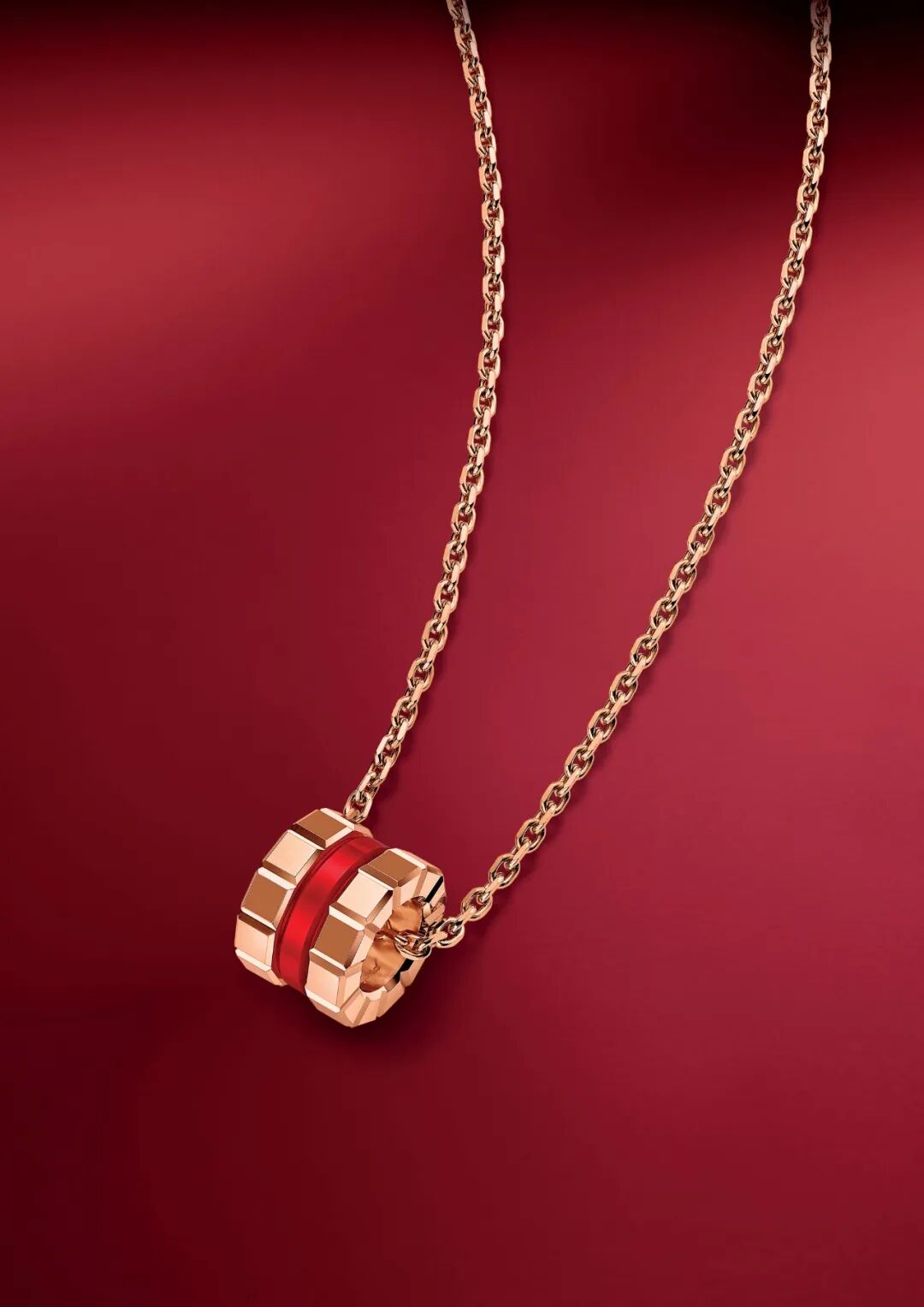 对材质与形态进行更大胆革新的当属宝诗龙,Quatre Red系列将红色高精密陶瓷融入经典巴黎饰纹。那款多功能长项链,红色陶瓷吊坠可在链条上自由滑动,一念之间变换造型。这份不拘一格的玩味精神与强势的视觉冲击,正是献给不愿被定义的时髦灵魂的新年礼物。同样深谙如何为文化图腾注入当代灵魂的麒麟,在Wulu Eternity系列中找到了优雅的平衡。璀璨钻石与标志性“麒麟红”HyCeram®陶瓷交相辉映,如同古典诗意与现代光影的对话。可调节设计让象征福禄的葫芦图腾,在日常与盛典间自如切换,完成了文化符号的当代优雅转型。
