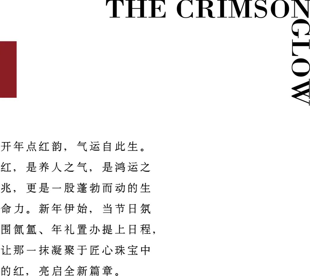 新年更迭,寄寓辞旧迎新的不仅是时间,更是我们赋予生活的仪式感与美好想象。一件蕴藏匠心与寓意的红色珠宝,便是这想象中最璀璨的注脚。它铭刻祝福,也彰显态度;它承载传统,也拥抱未来。愿这份穿戴于身的“红韵”,时刻提醒你自身的光芒与力量,伴你在新的旅程中,自信充盈,光彩自成。