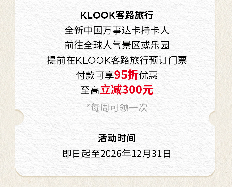 摘要:领取Klook客路旅行立减300元、Agoda预订85折、跨境购物返现礼遇,至高可享50美元返现!