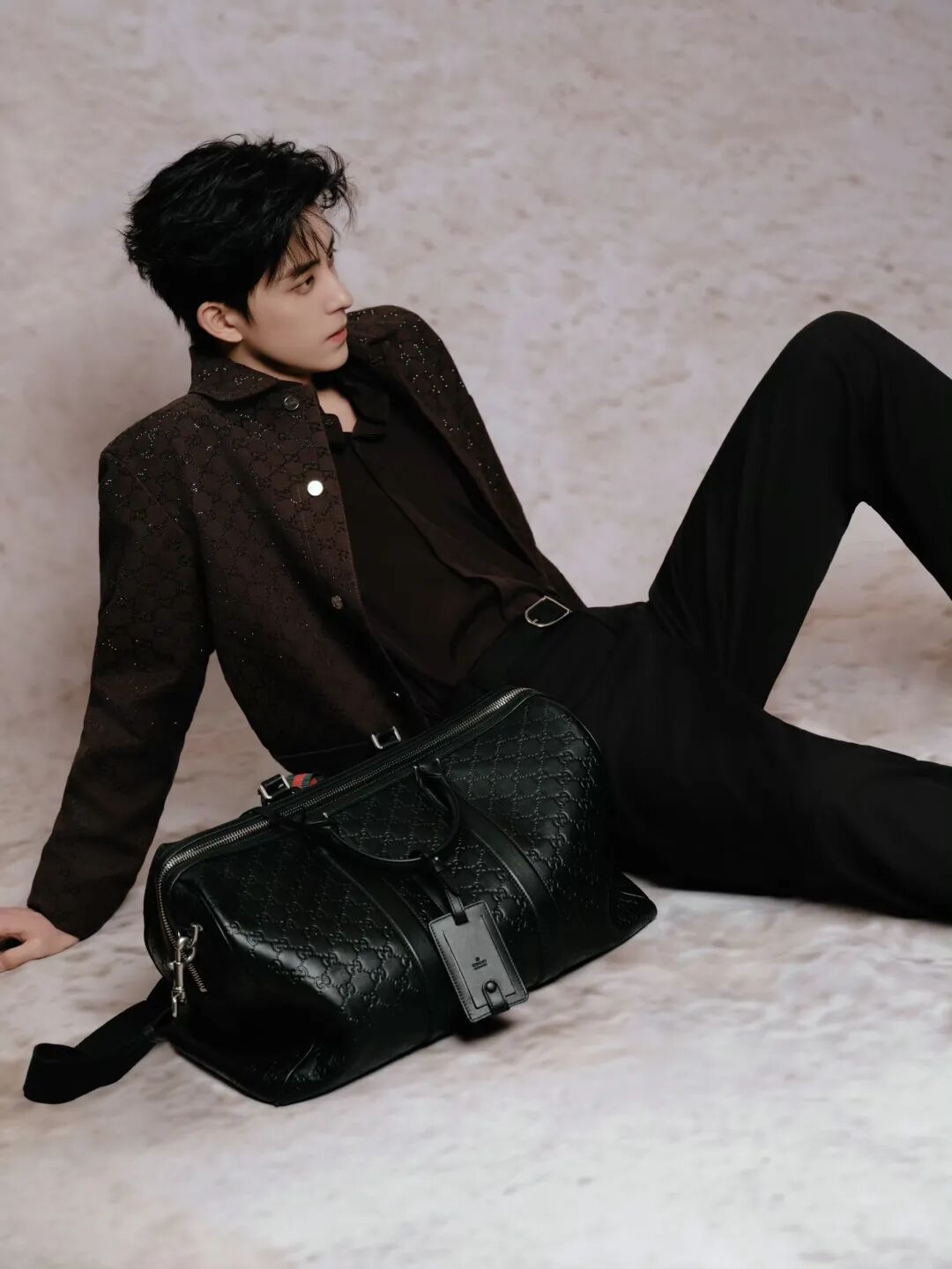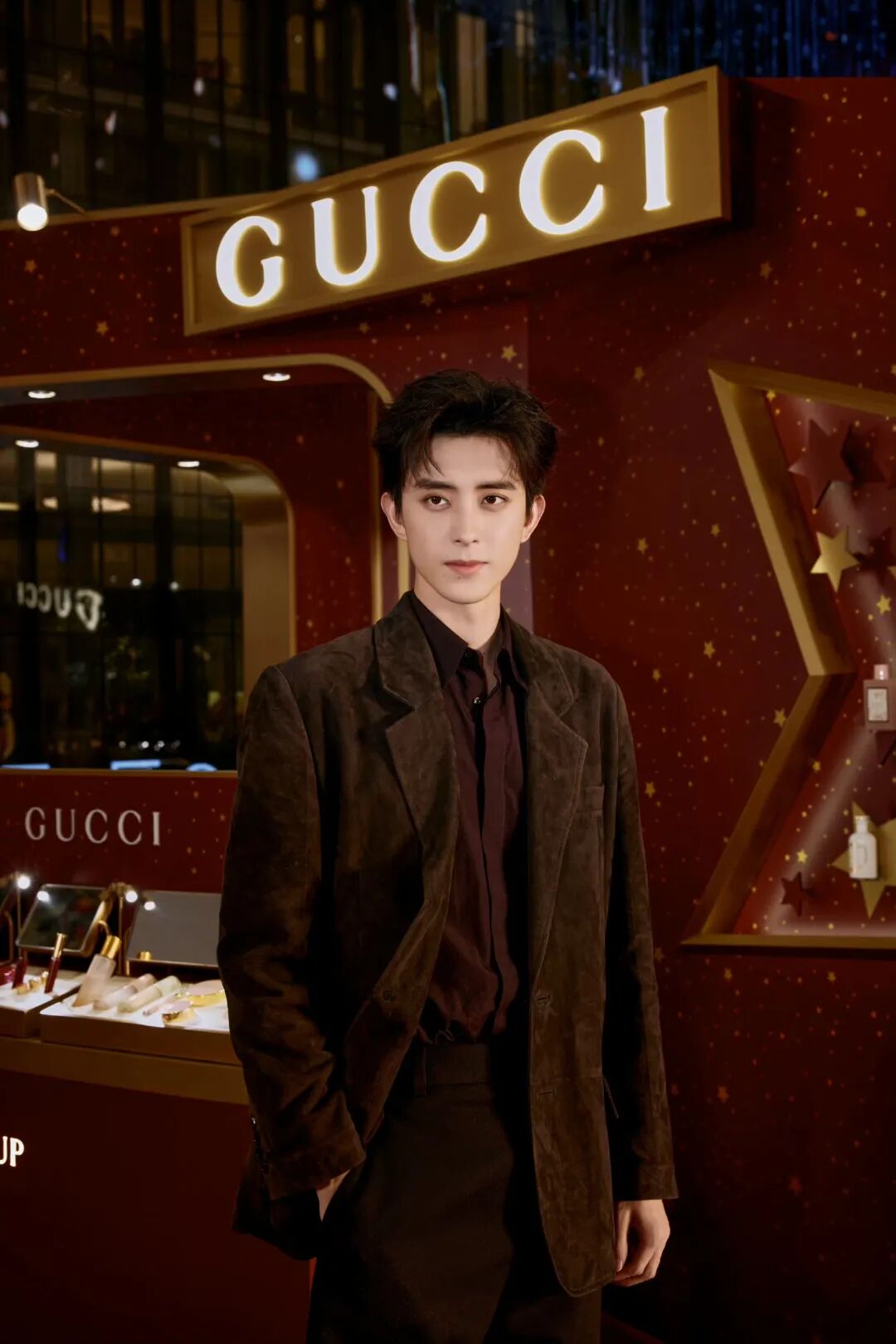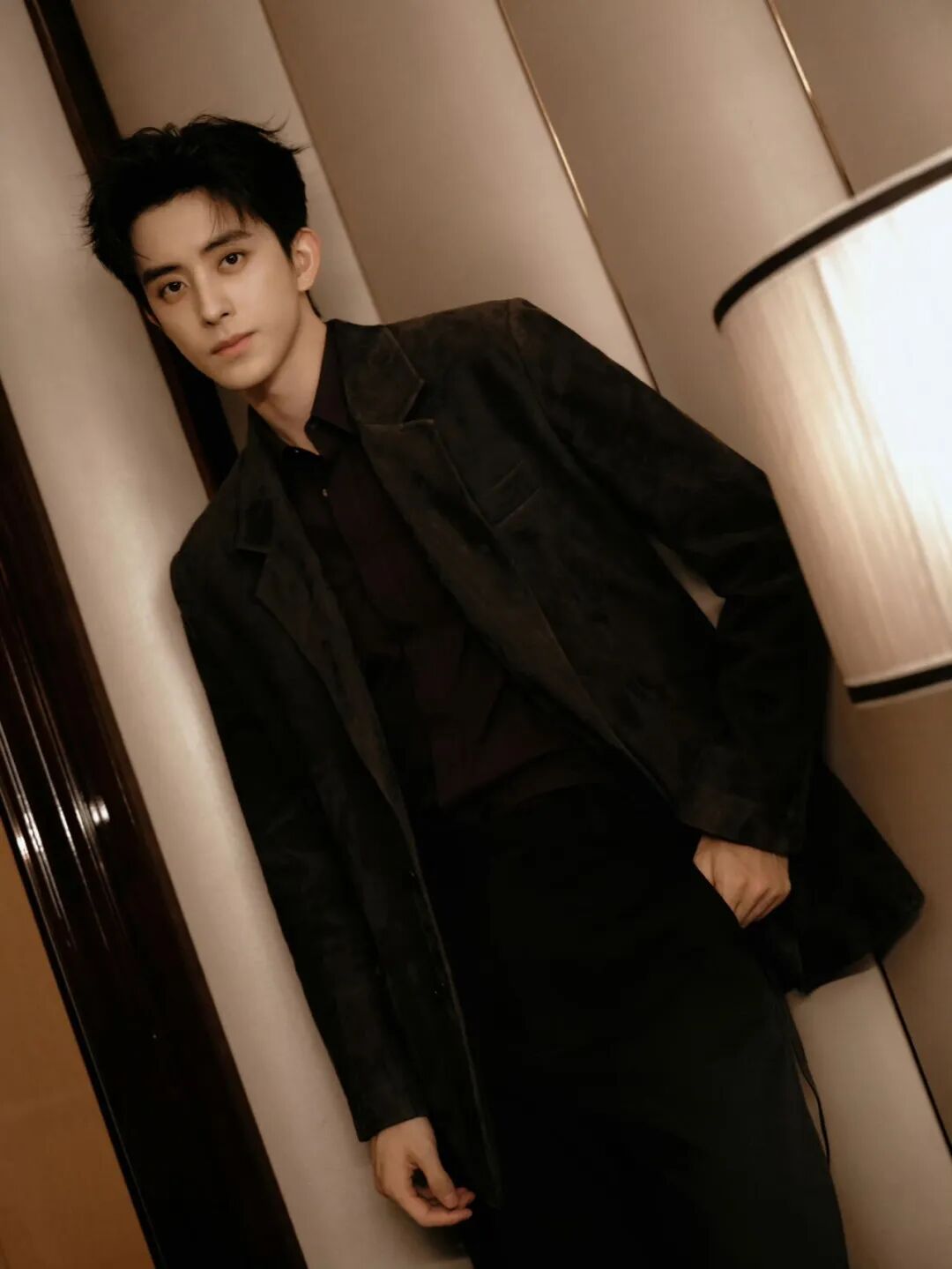 敖瑞鹏的两身复古红棕 look 也细节满满。麂皮面料自带的柔雾效果给人附上温柔滤镜,内搭采用勃艮第红与之交融,营造温暖的冬日感。